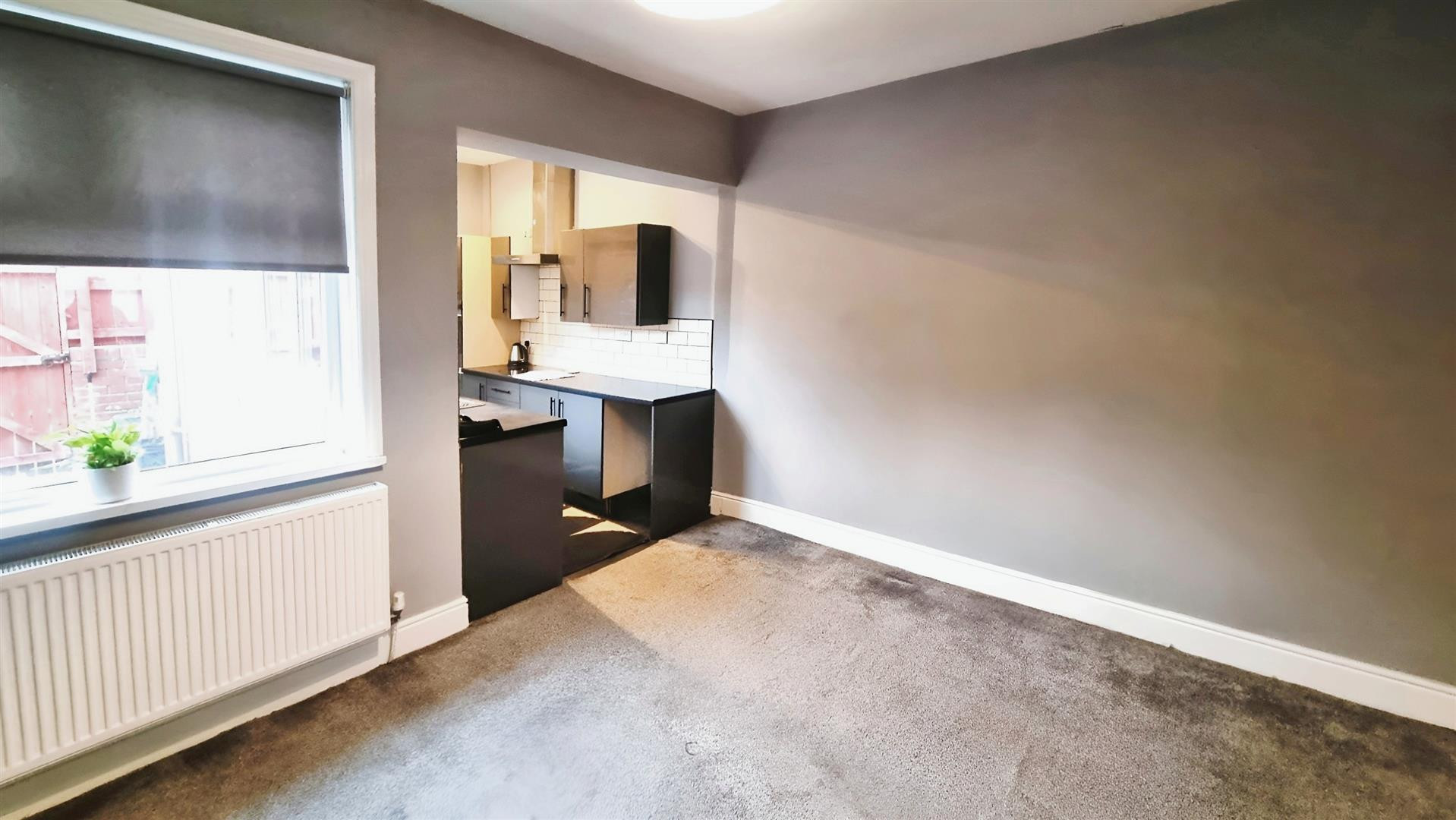 Central heating radiator and uPVC window to the front.