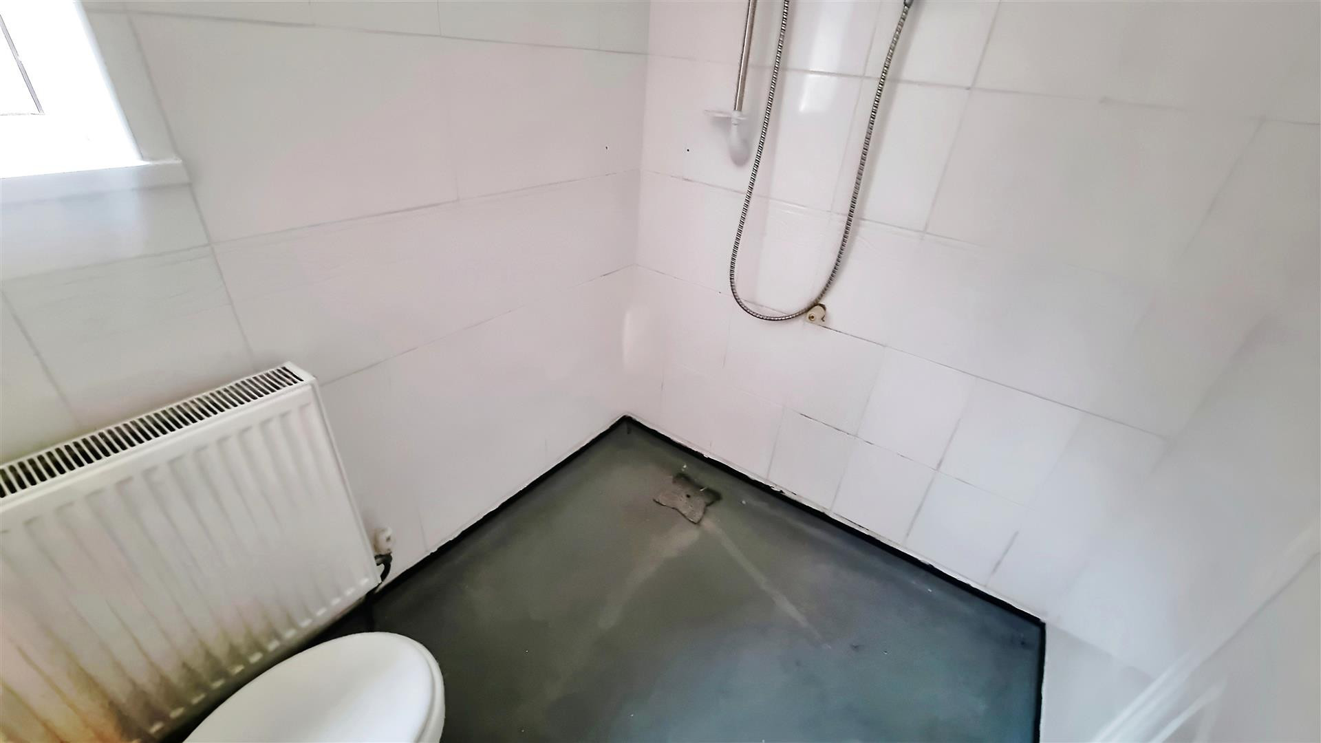 WC, electric shower and central heating radiator.