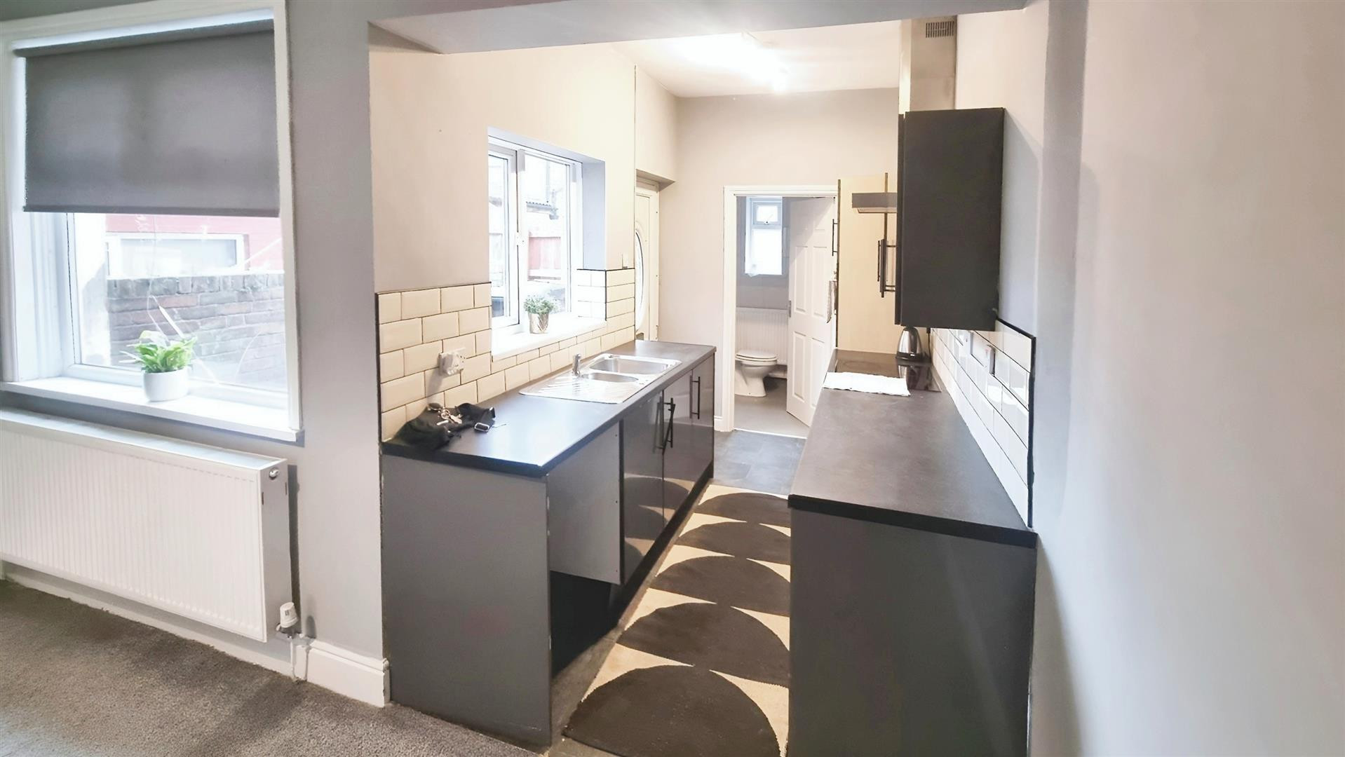 Central heating radiator and uPVC window to the rear.