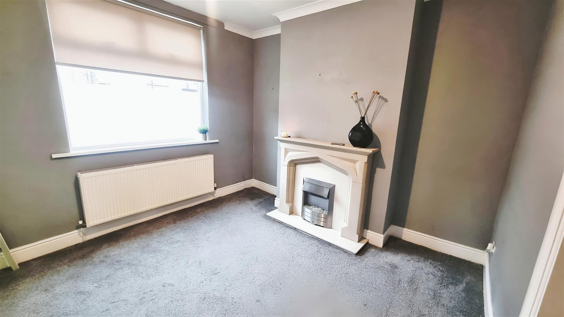 With feature fireplace, electric fire, central heating radiator and uPVC window to the front.