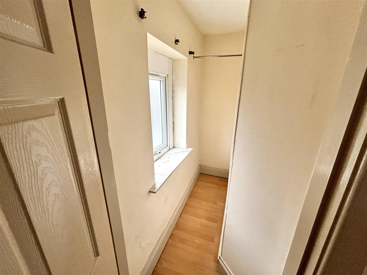 With a UPVC double glazed window to the front, laminate flooring, radiator, recessed spotlighting and a walk-in wardrobe.
