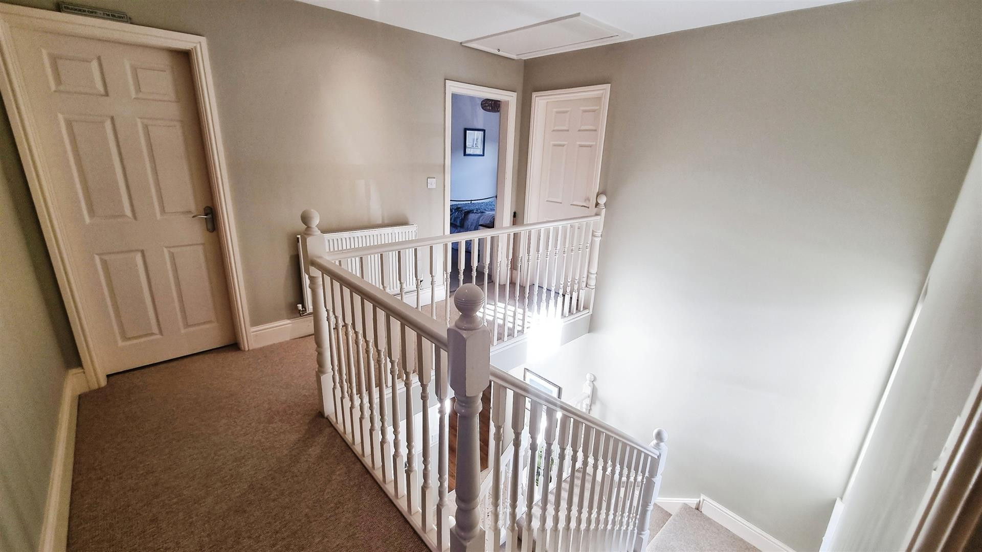 Stunning galleried landing area connecting to four bedrooms and bathroom. Having 3 storage cupboards, boiler cupboard and loft hatch.