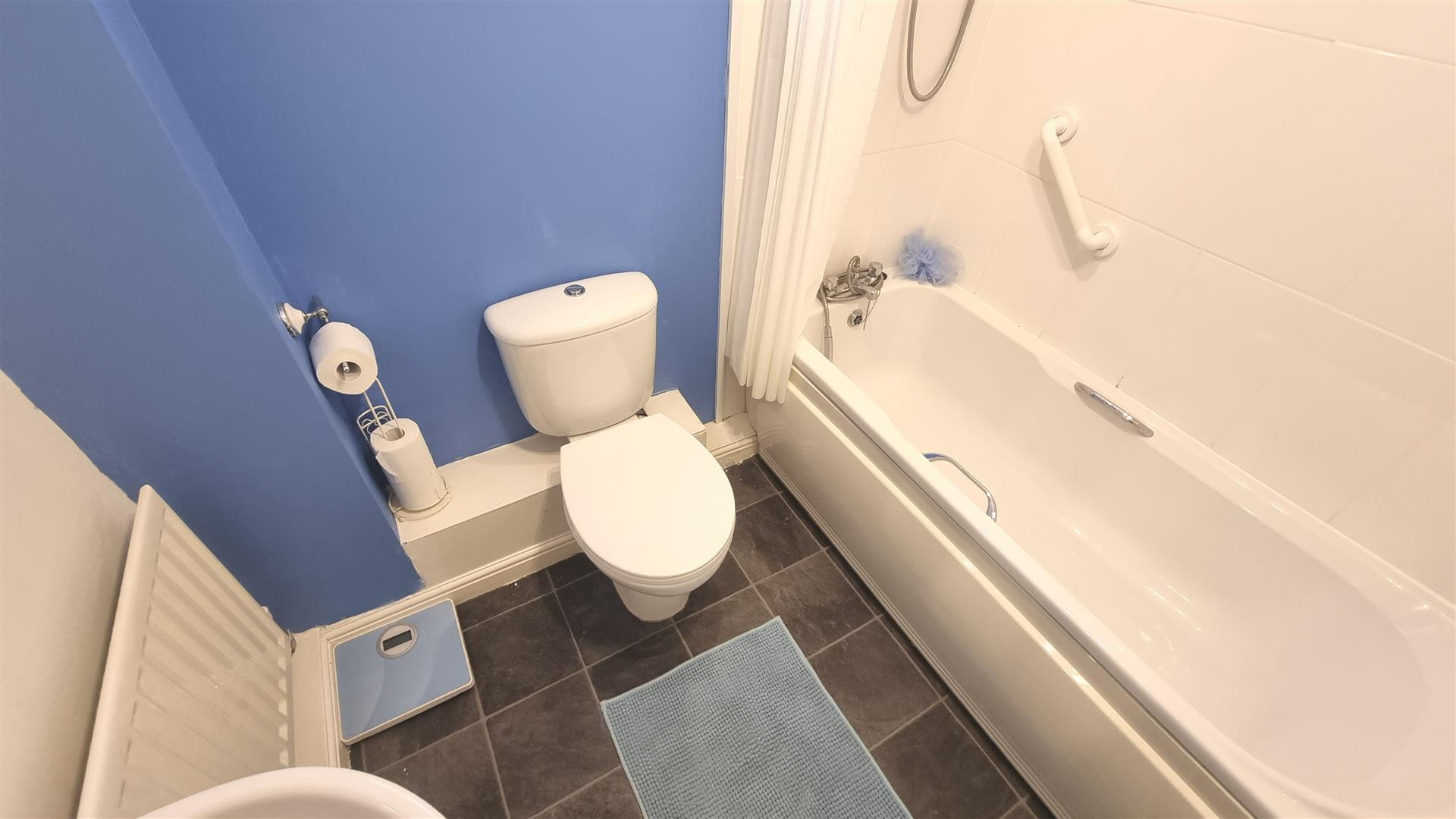 Fitted with a three piece suite comprising bath with electric shower over, WC, wash hand basin, central heating radiator and obscured UPVC window.