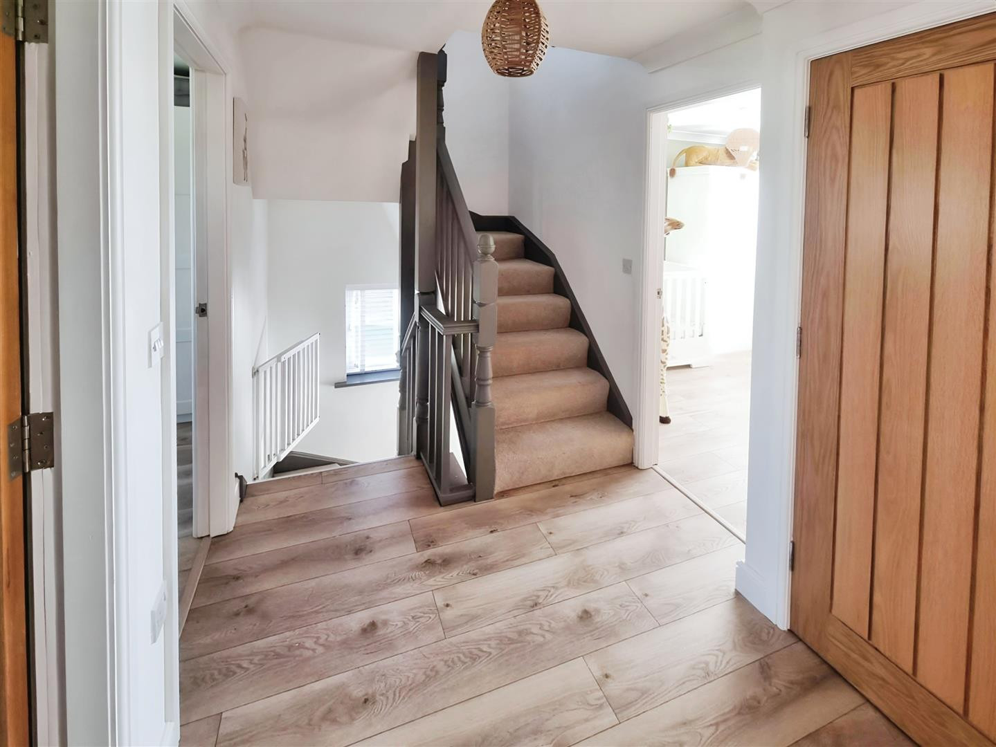 With uPVC double glazed window to side, airing cupboard and stairs rising to second floor.