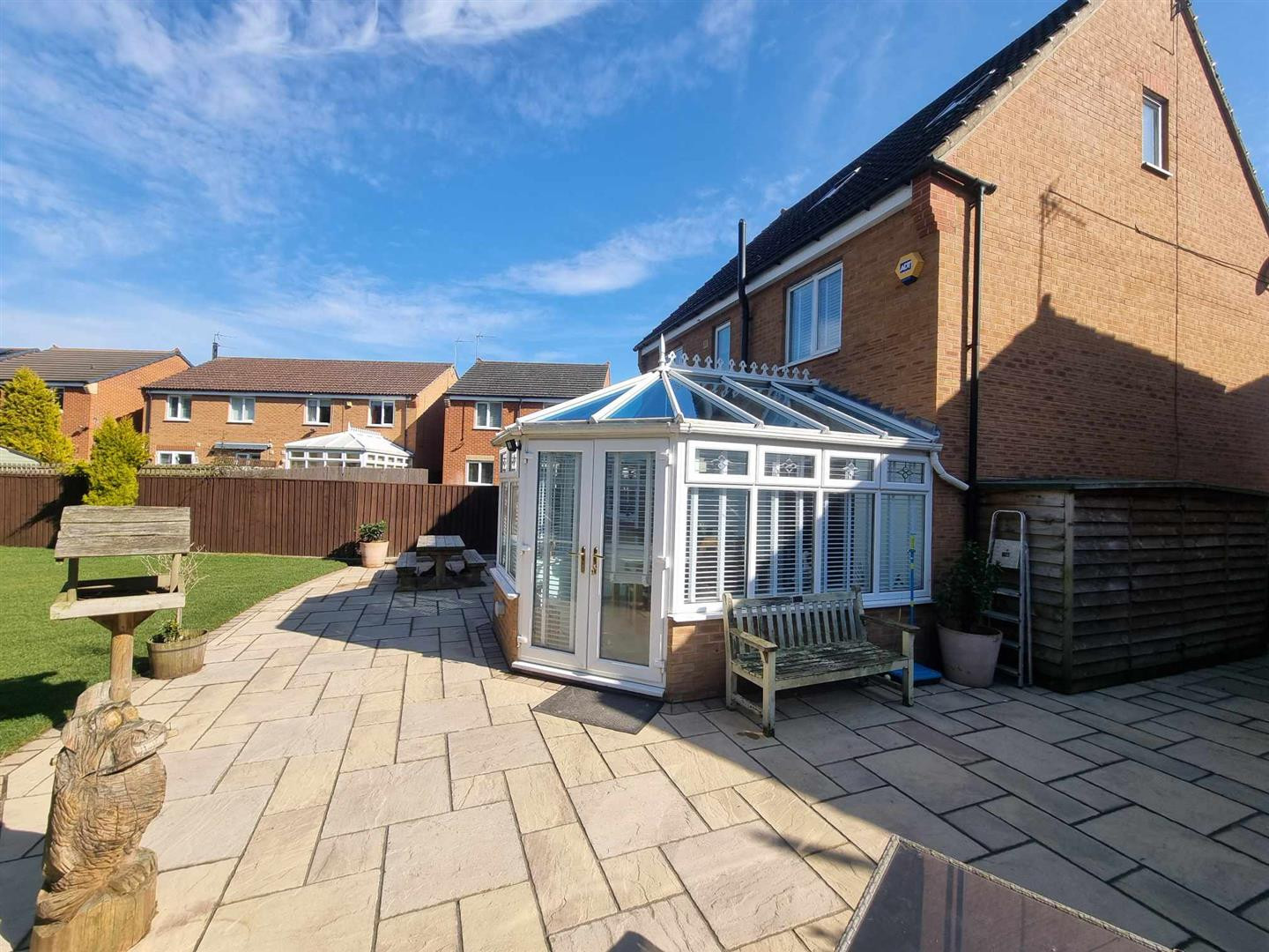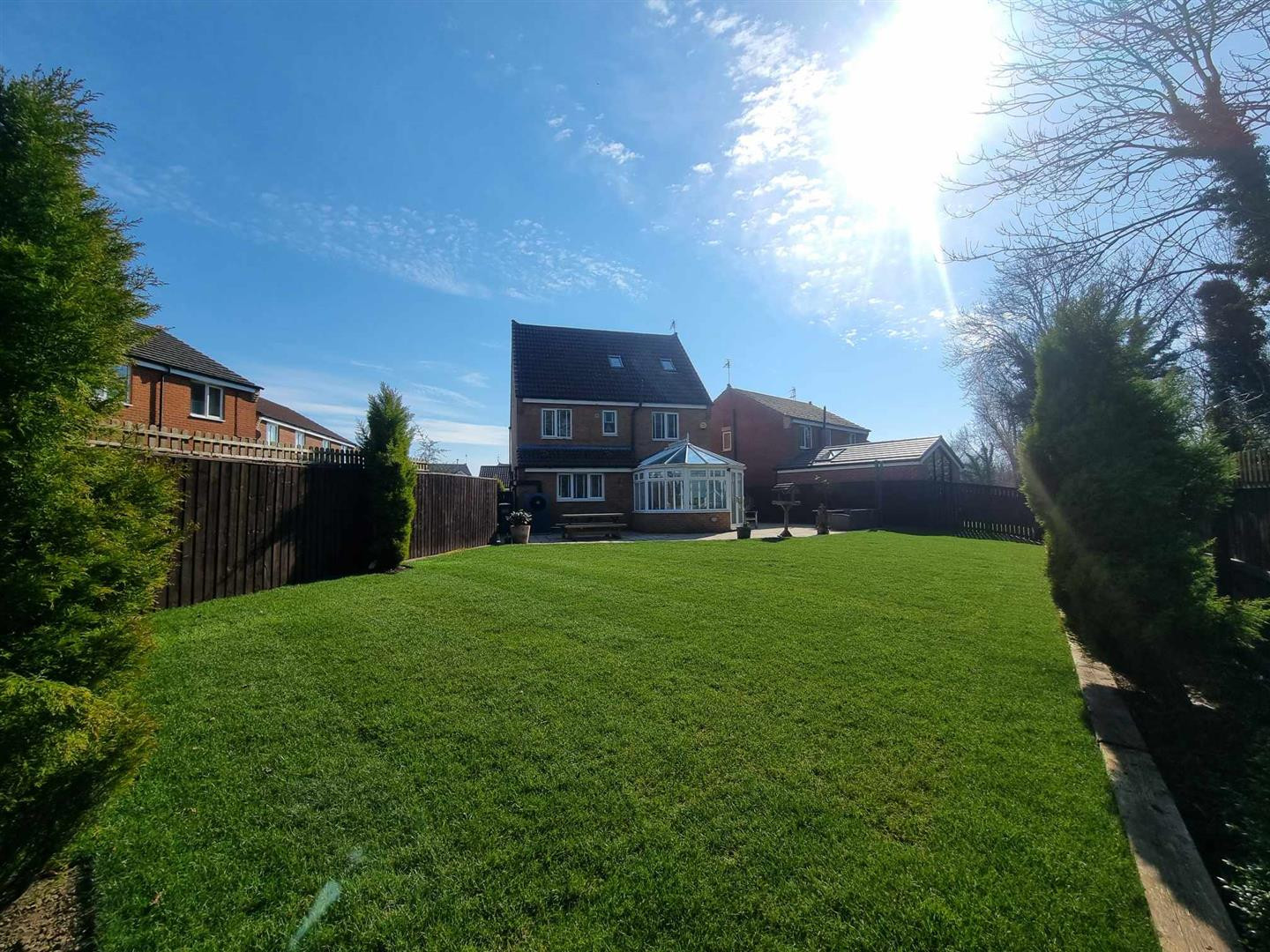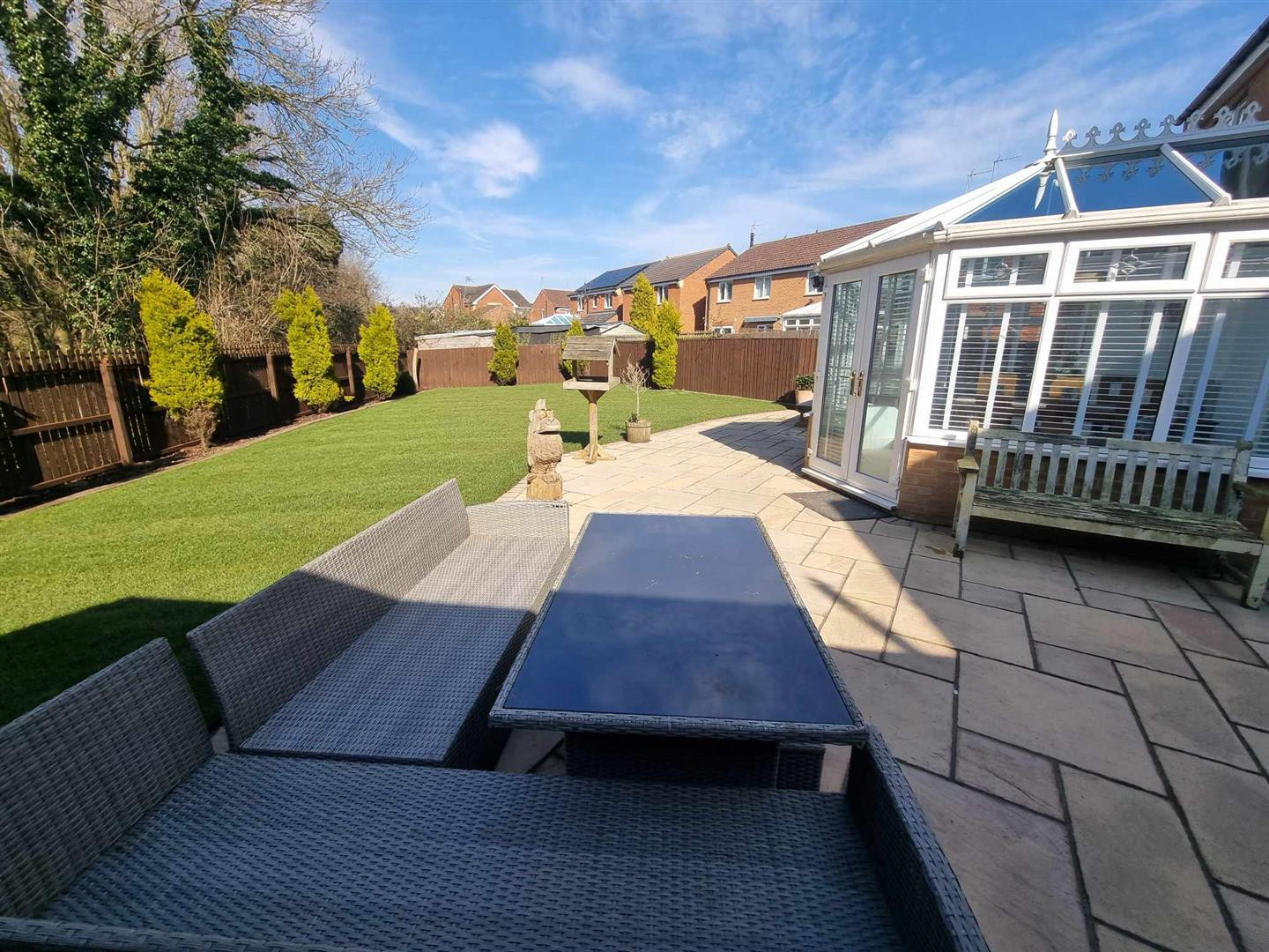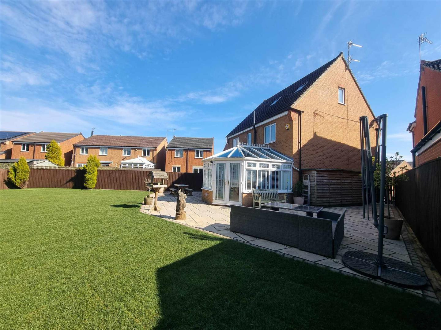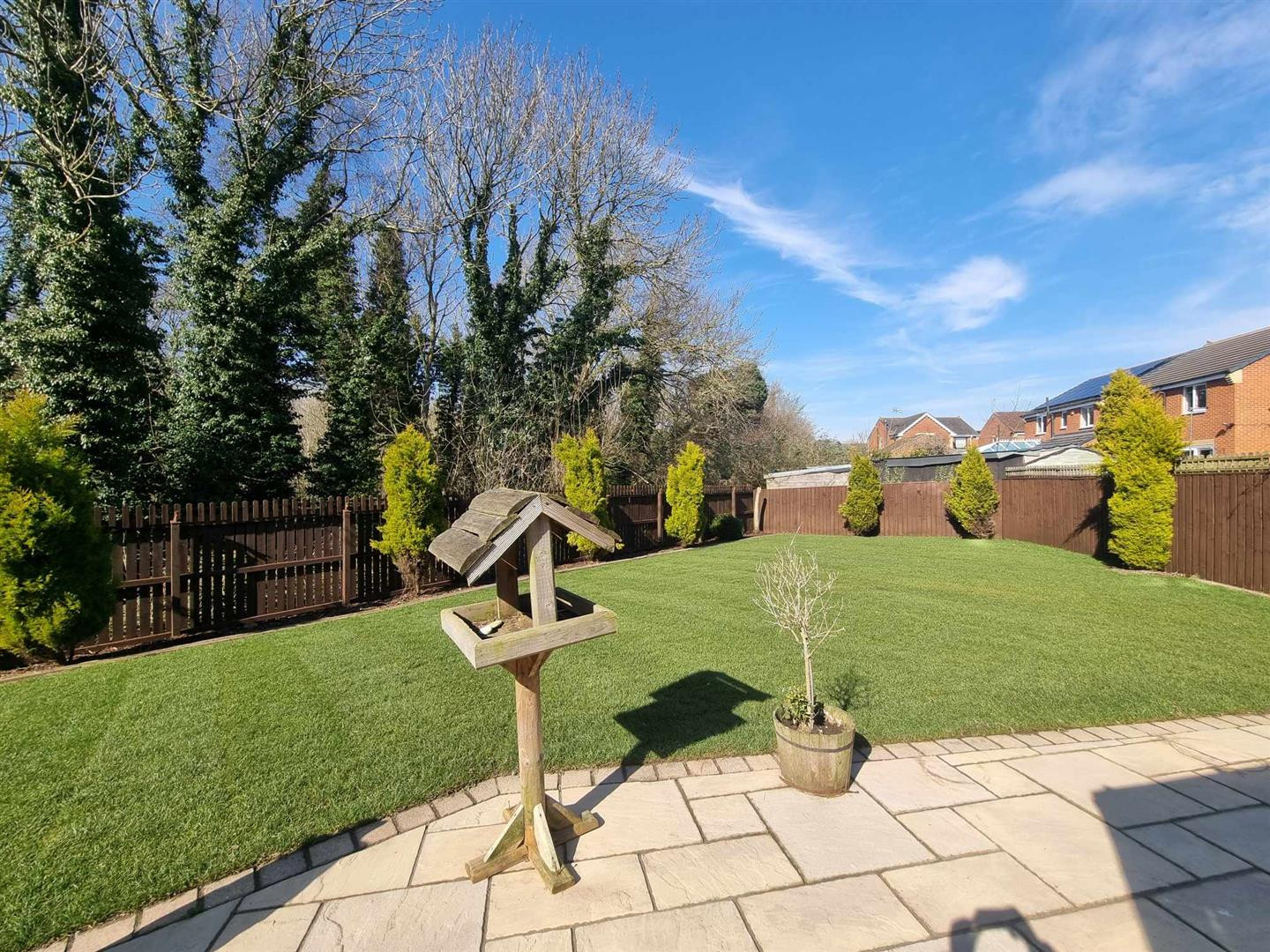 Occupying a substantial plot with extensive gardens which are mainly laid to lawn with gravelled borders, paved patio area around the Conservatory. The property is not directly overlooked to the rear as it faces a woodland area.