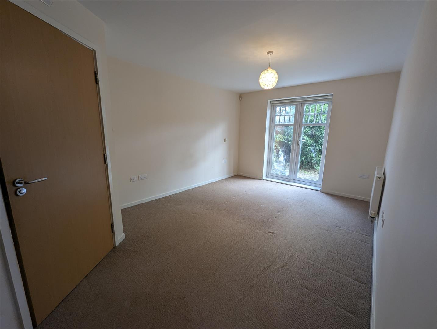 Spacious room with double glazed window and french doors, feature pebble effect wall mounted electric fire and two radiators.