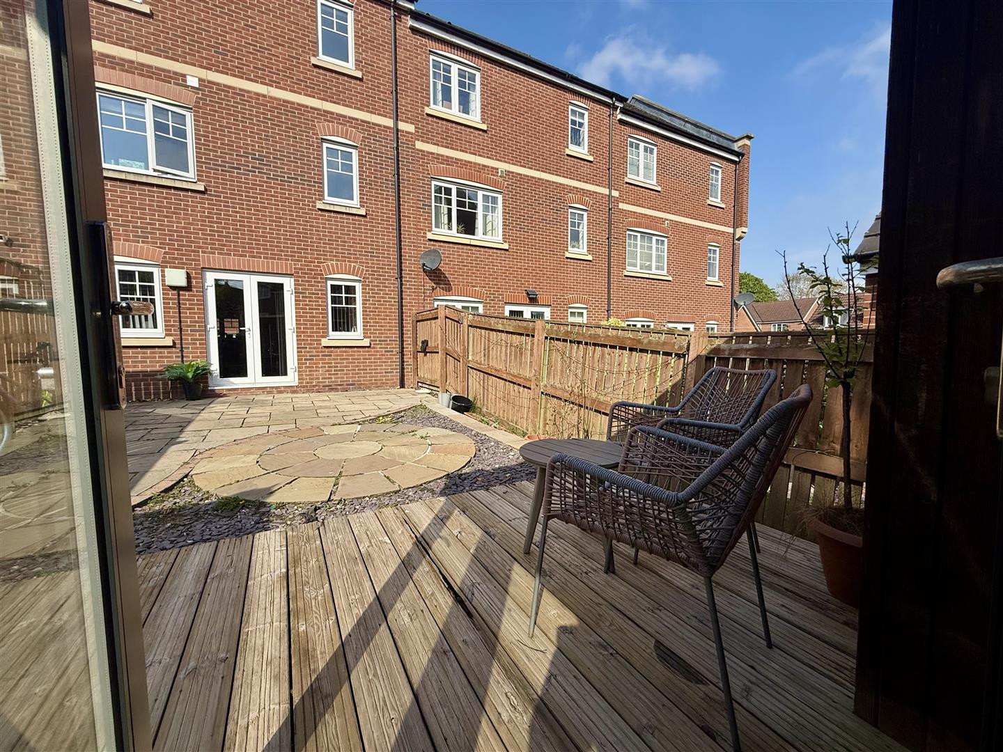 Rear Garden - The rear garden again has been designed for low maintenance with attractive stone patio with plum slate, attractive decking and also having a unique bespoke garden room with power and lighting.