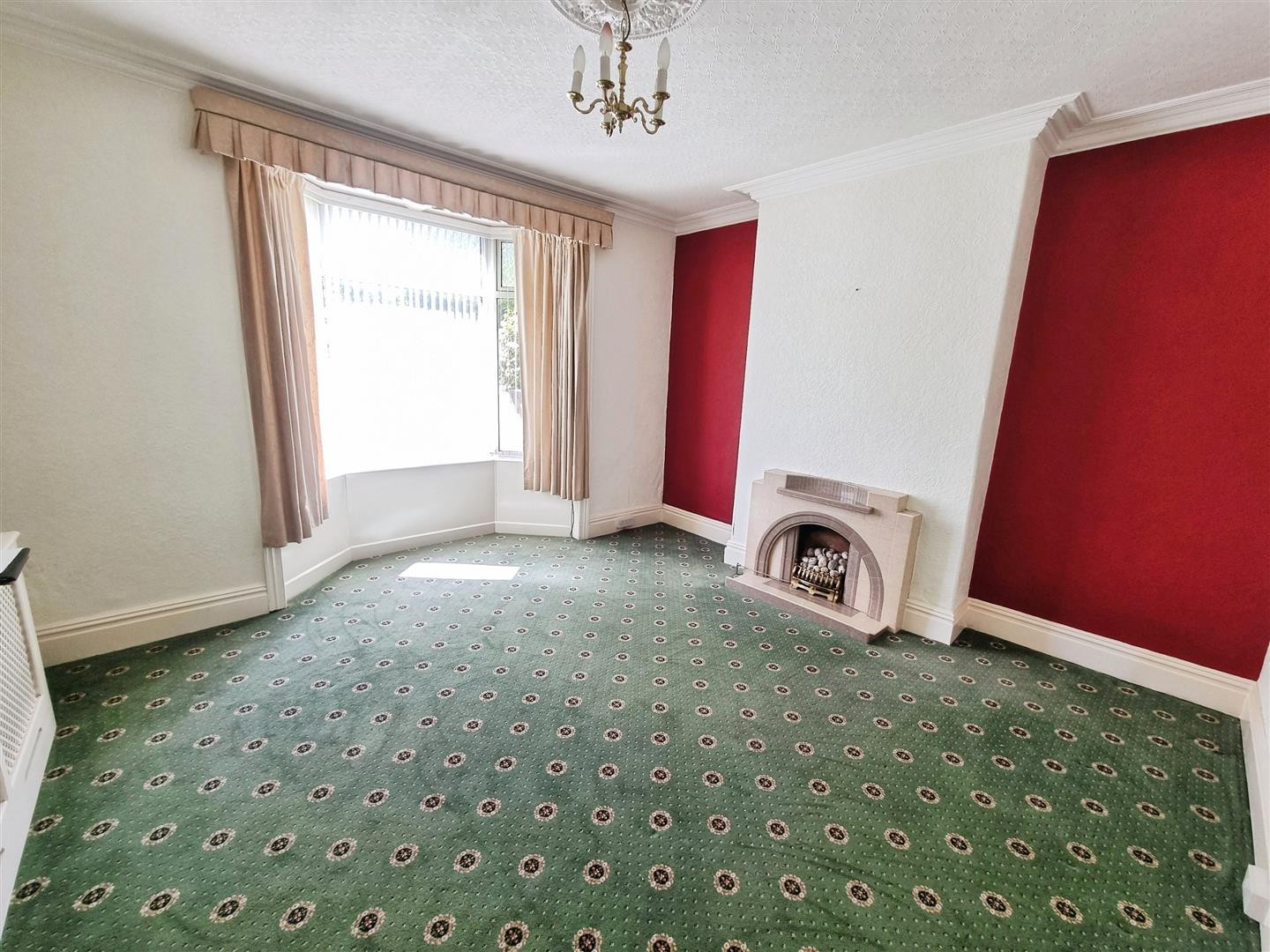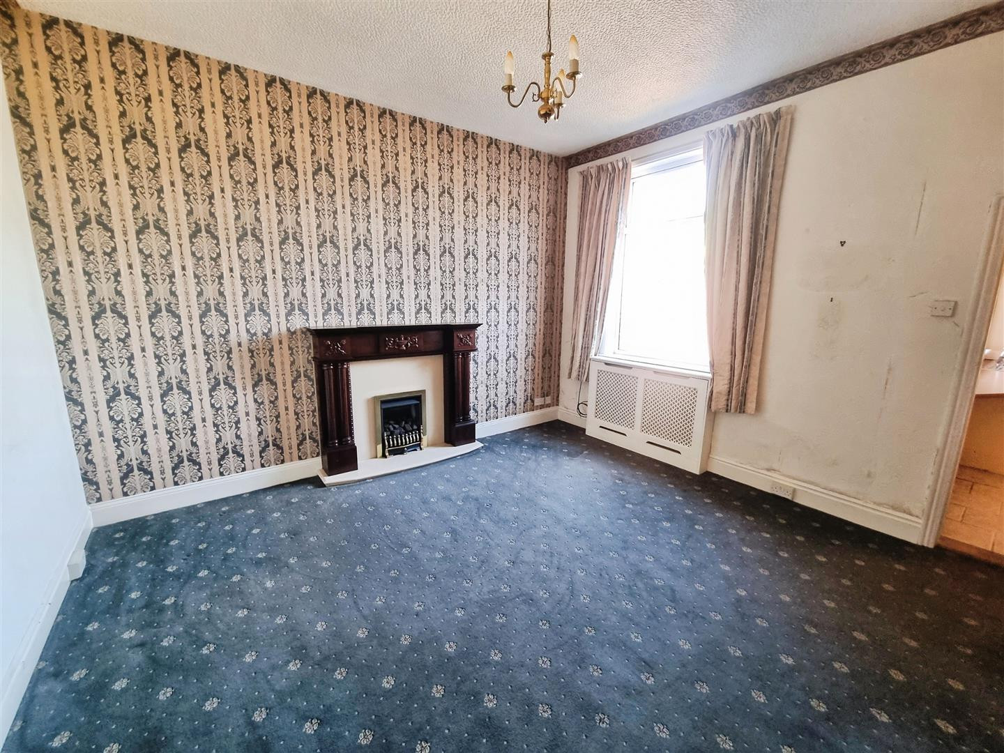 Having feature fireplace with gas fire, central heating radiator and uPVC double glazed window to front.