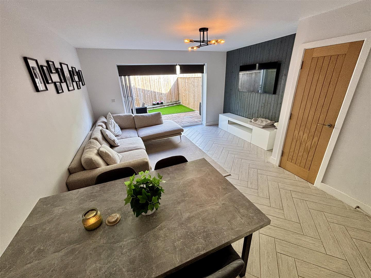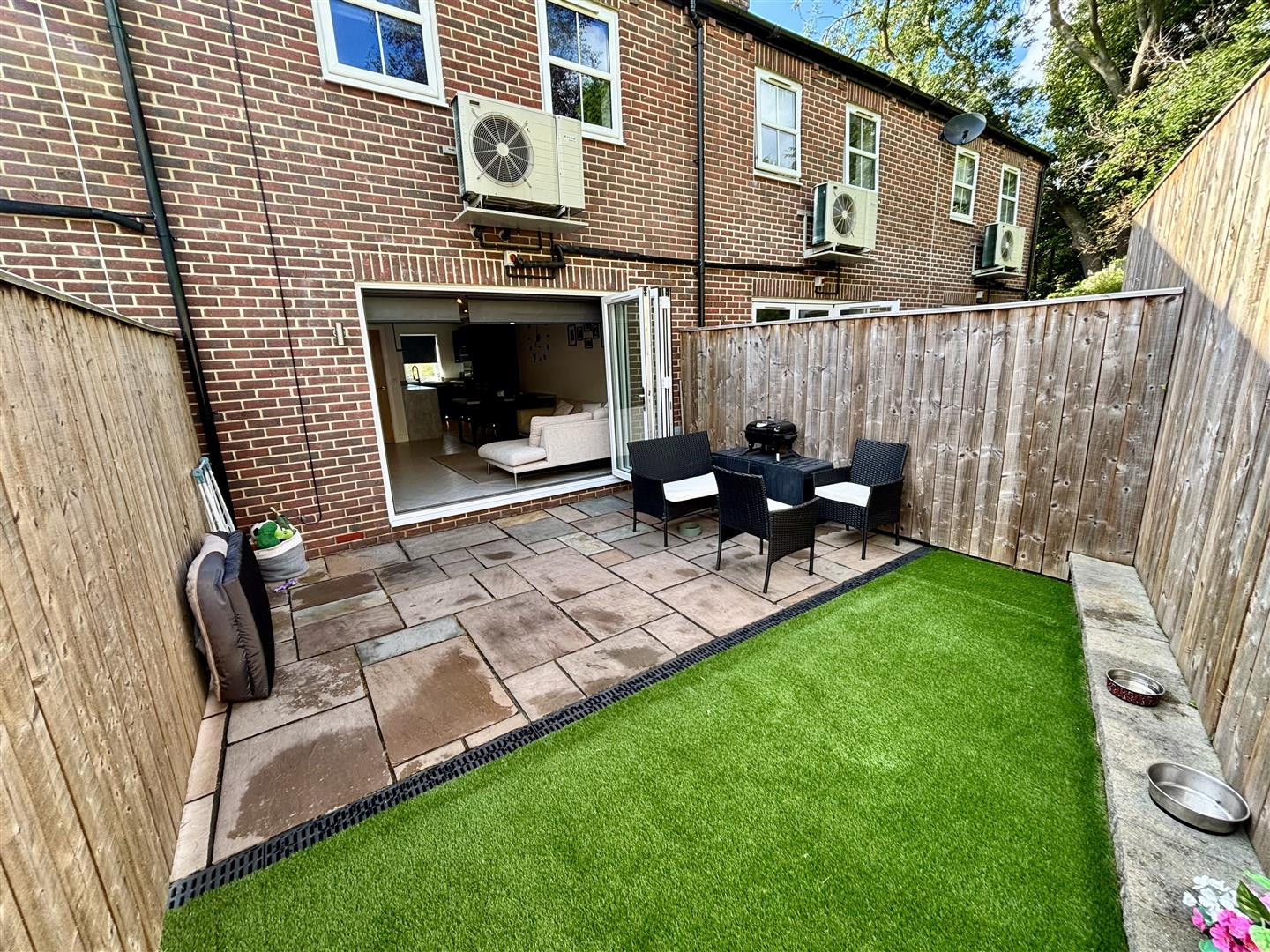 To the front of the property is a double driveway, whilst to the rear is an enclosed, low maintenance garden with artificial lawn and patio areas.