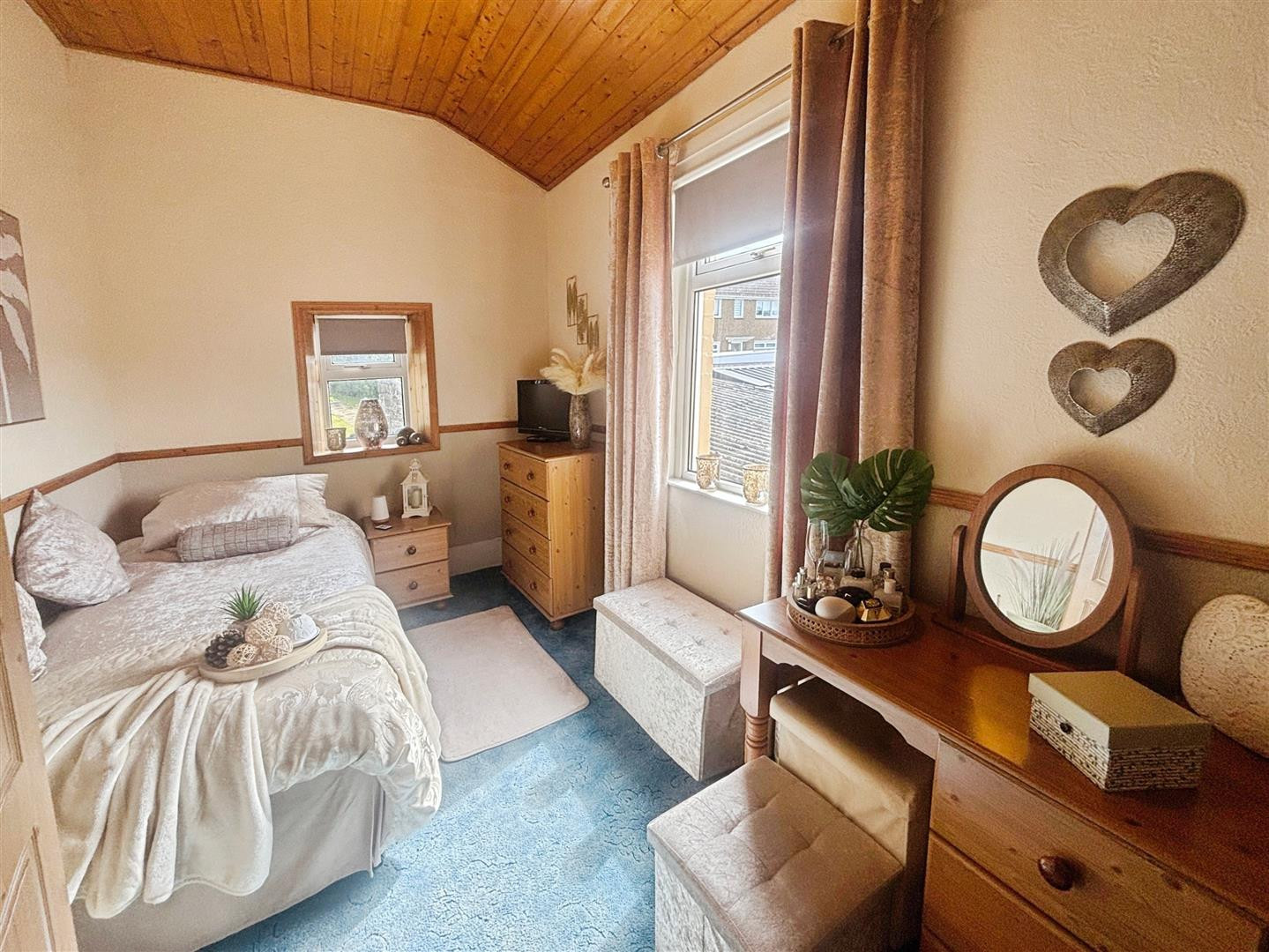 Located to the rear elevation of the property having UPVC window over looking the neighbouring fields, central heating radiator and fitted wardrobes to one wall.