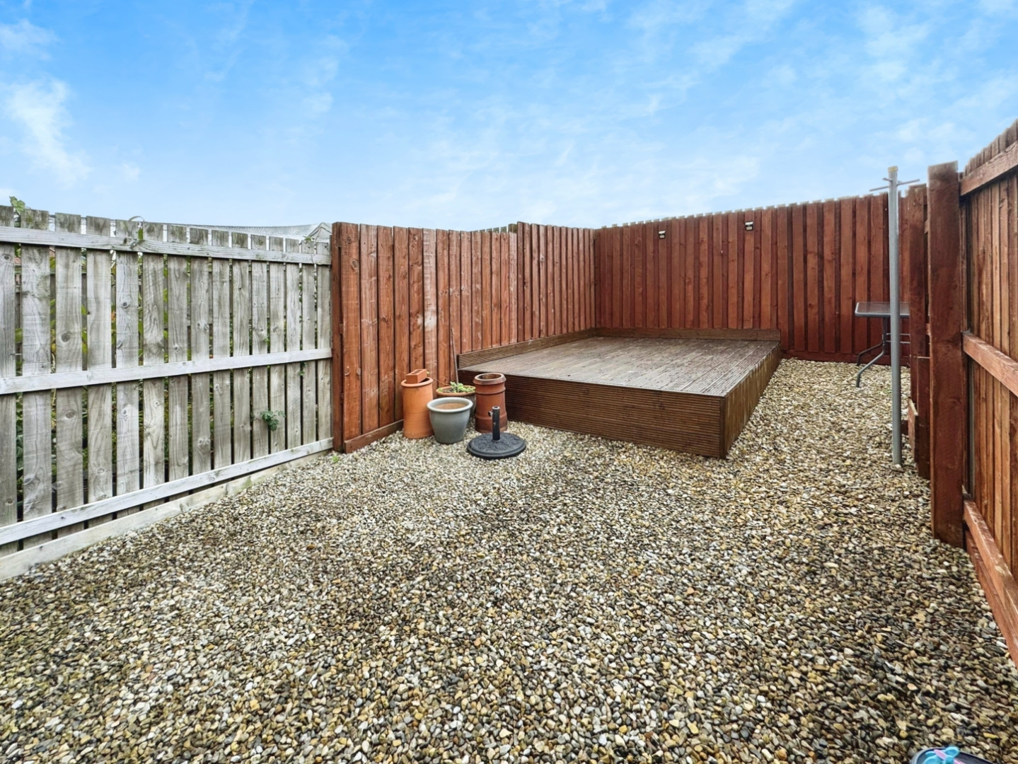 To the front of the property there is a smalled lawned garden. To the side of the house there is a driveway which provides car parking for two vehicles. Whilst immediately to the rear there is a good sized enclosed garden which is gravelled for low maintenance and has a decked patio area and storage shed