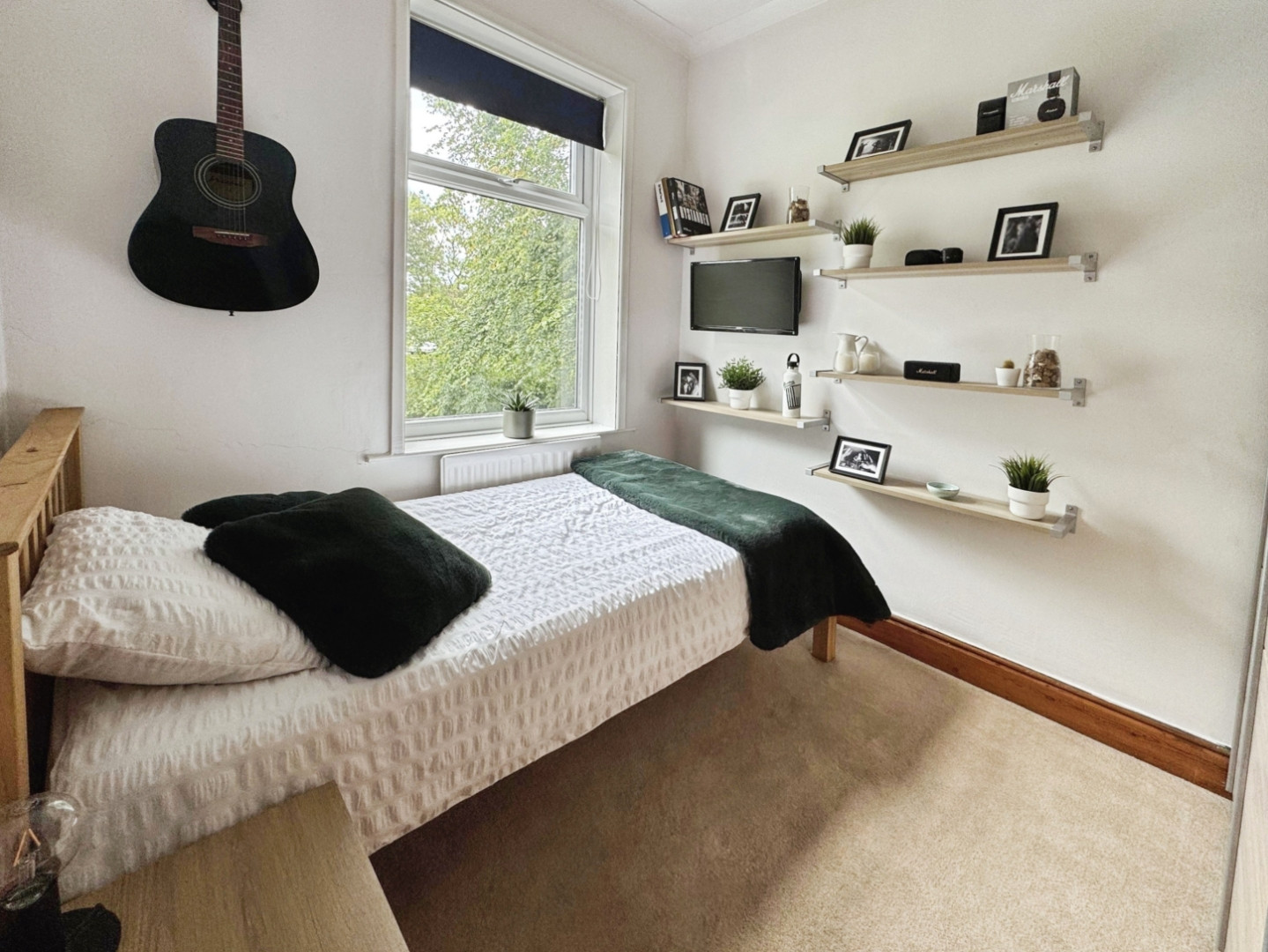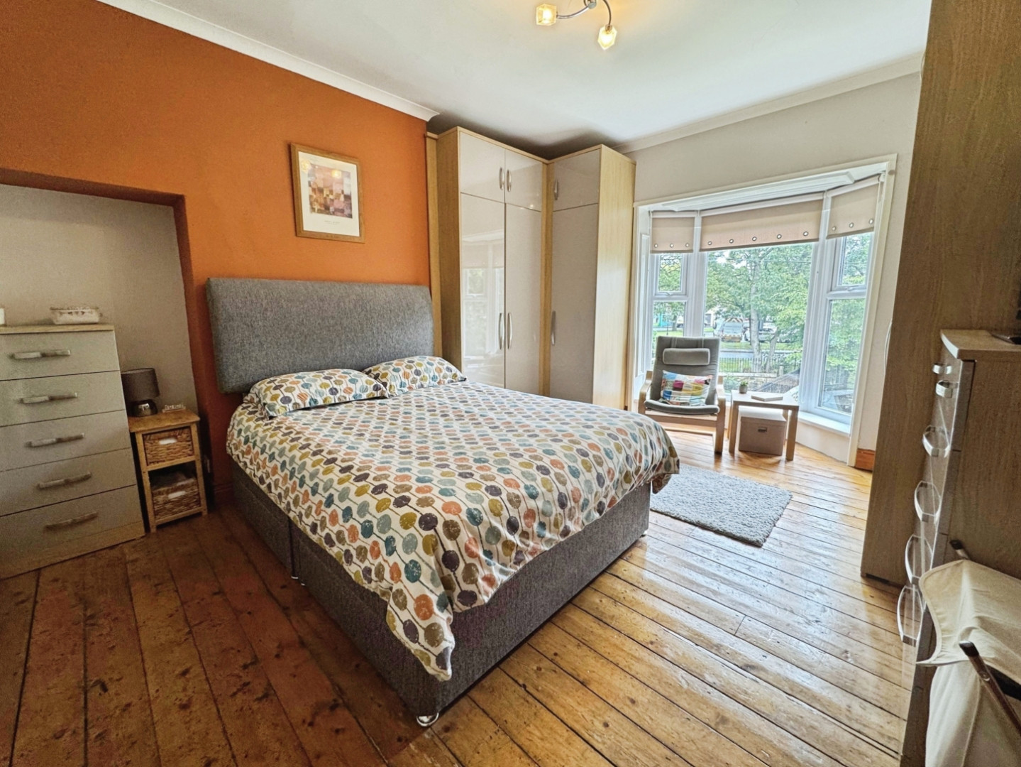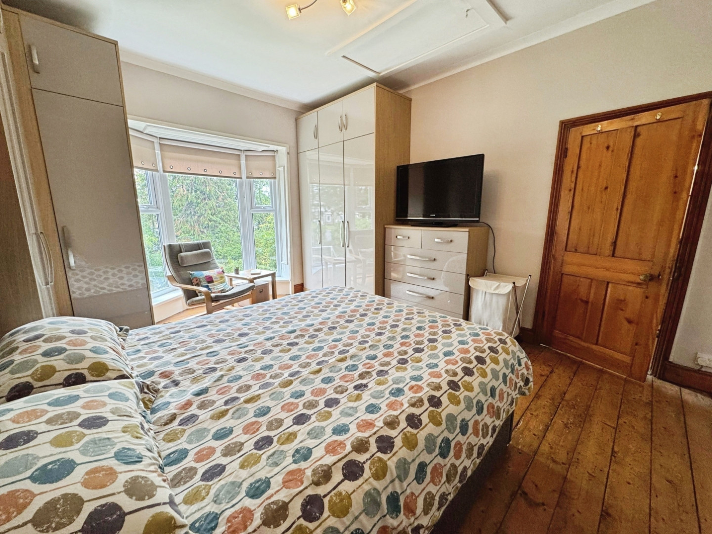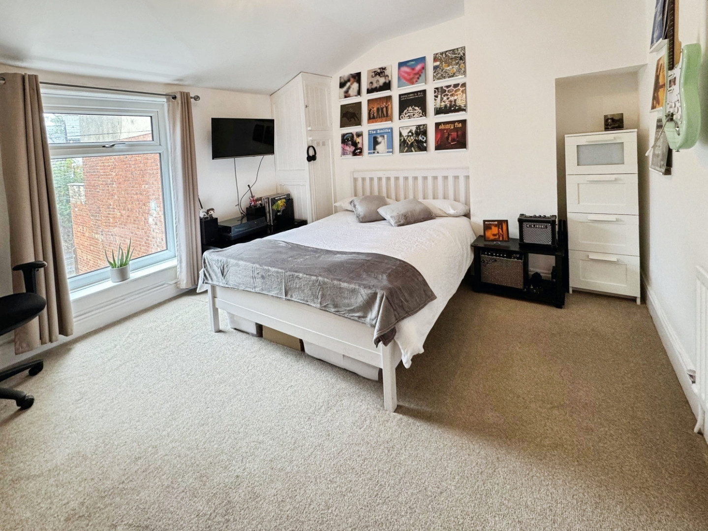 Having original wood flooring, coving to ceiling, television point, central heating radiator, and feature UPVC double glazed bay window to the front elevation and there is a range of fitted wardrobes. There is a loft hatch with a pull down ladder giving access to attic space that has been boarded out, insulated and has an electric light.