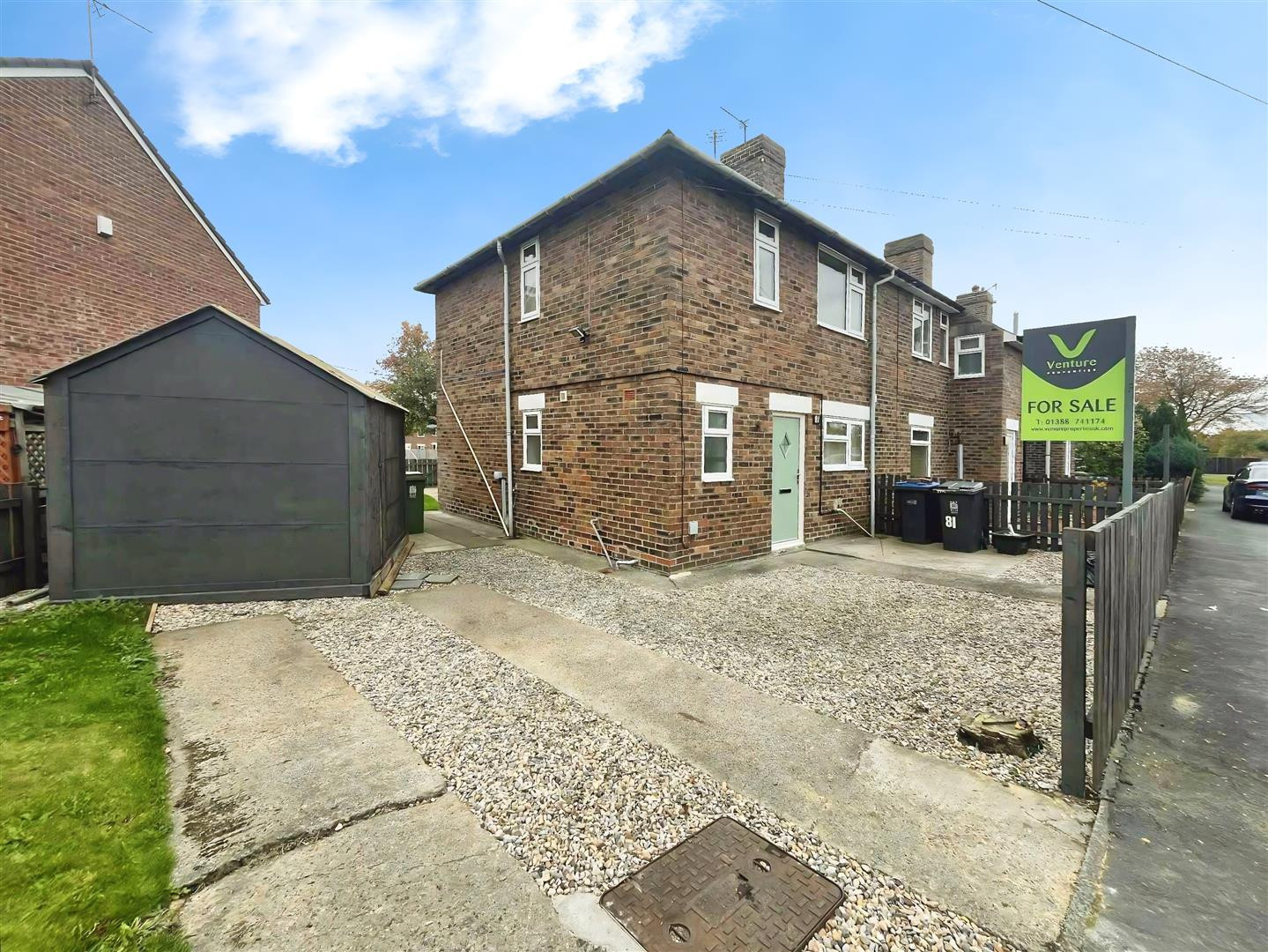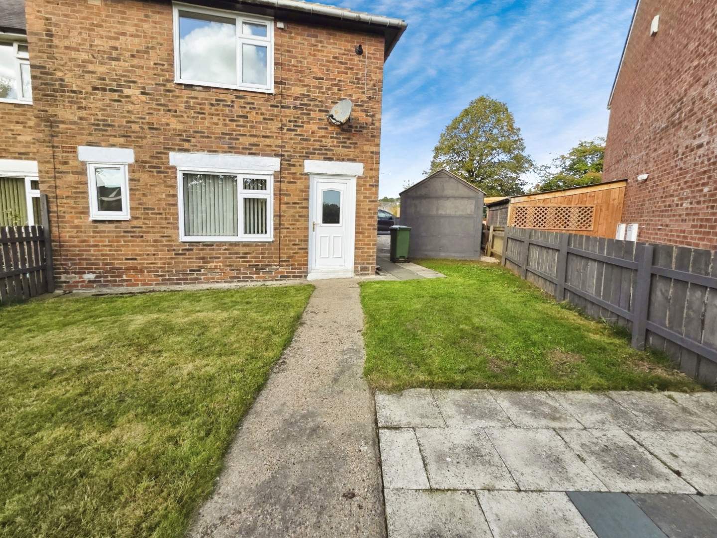 to the side and front is a enclosed garden laid to lawn and bounded by fencing, additionally is a garden shed