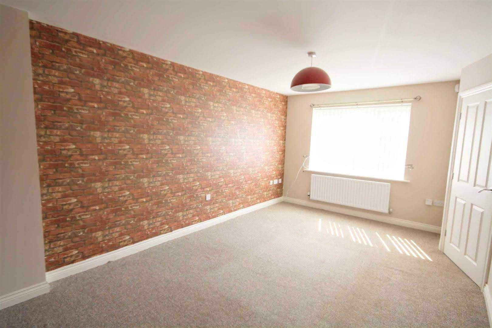 To the front there is an open plan lawned garden with driveway. Whilst to the rear there is a fence enclosed lawned garden with access.