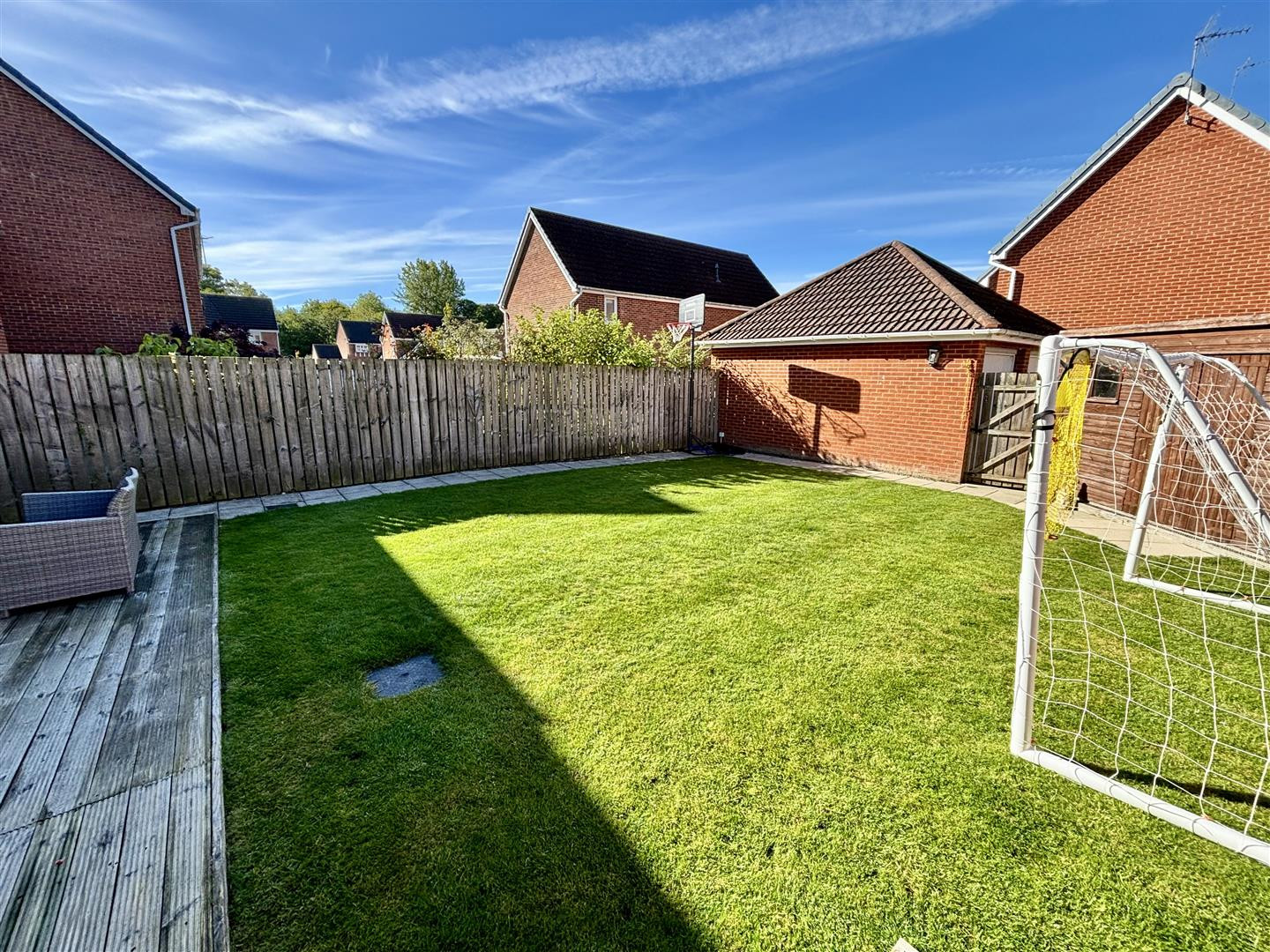 The property enjoys a corner plot with a lawned garden extending down to the side of the house. To the rear is a good sized, enclosed garden with lawn, decked patio, paved walkways, wooden storage shed and gate to the driveway.