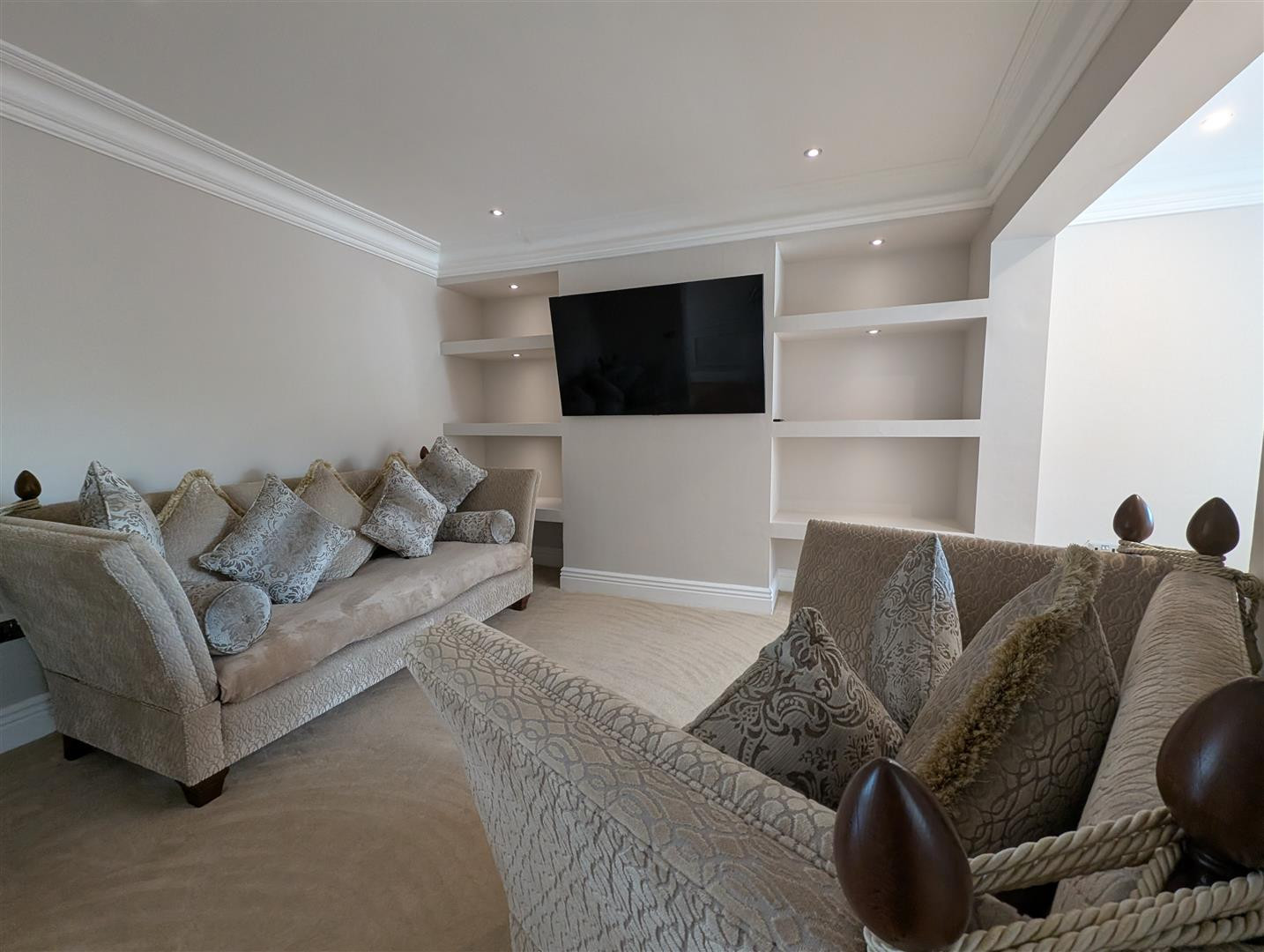 Upvc double glazed bay window to front, deep coving and spotlights to ceiling, wall panelling with display storage cabinets into alcoves. Laminate flooring.
