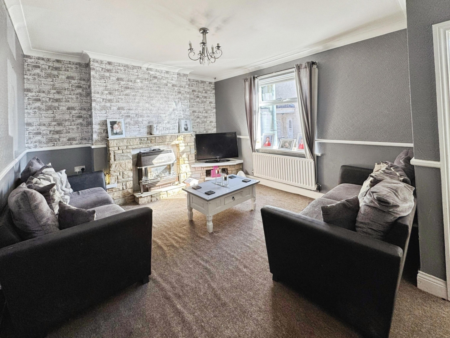 With fireplace having Gas fire with back boiler providing central heating and domestic hot water, UPVC double glazed window, central heating radiator, coving to ceiling and dado rail