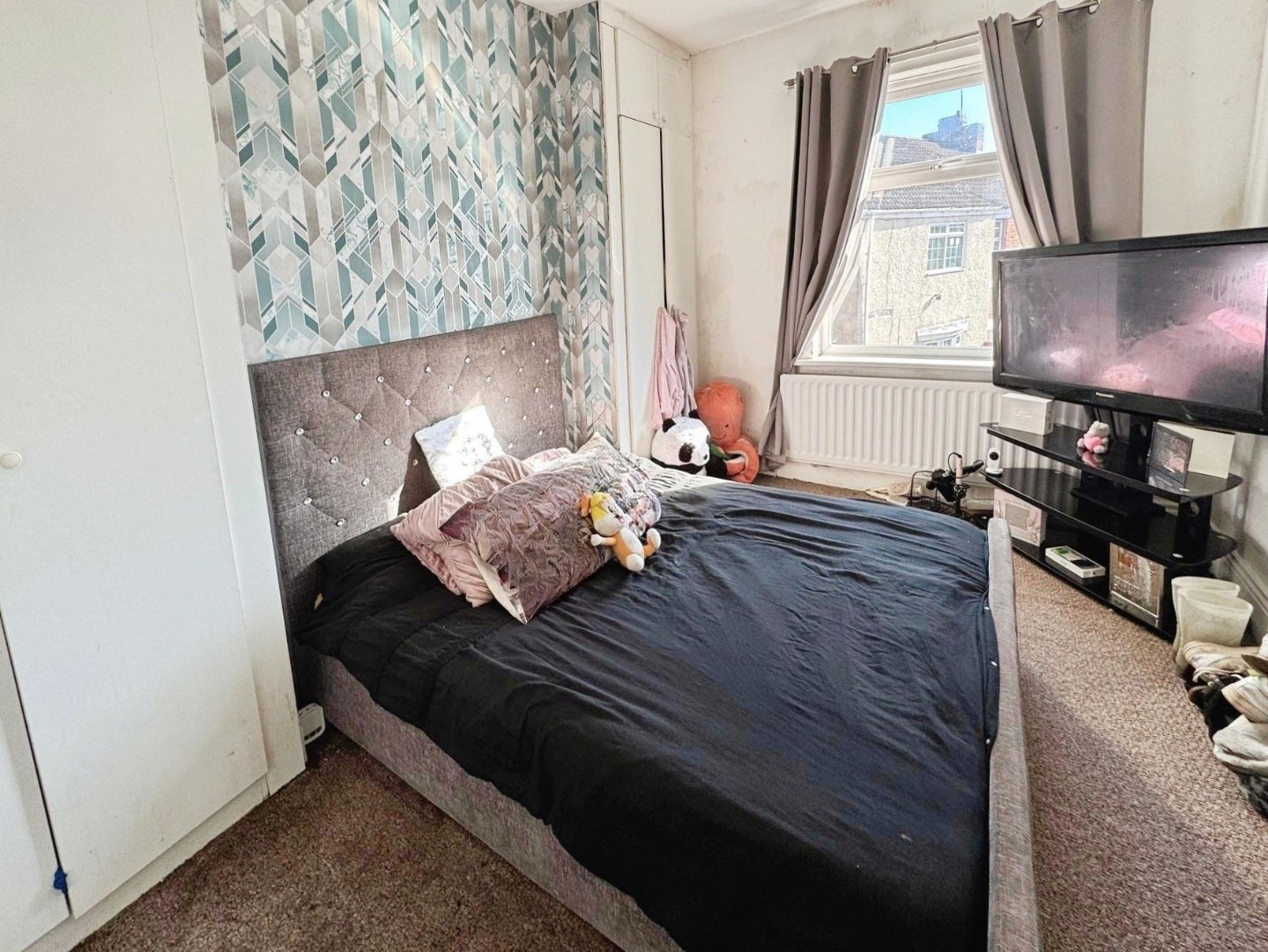 UPVC double glazed window, central heating radiator and fitted wardrobes