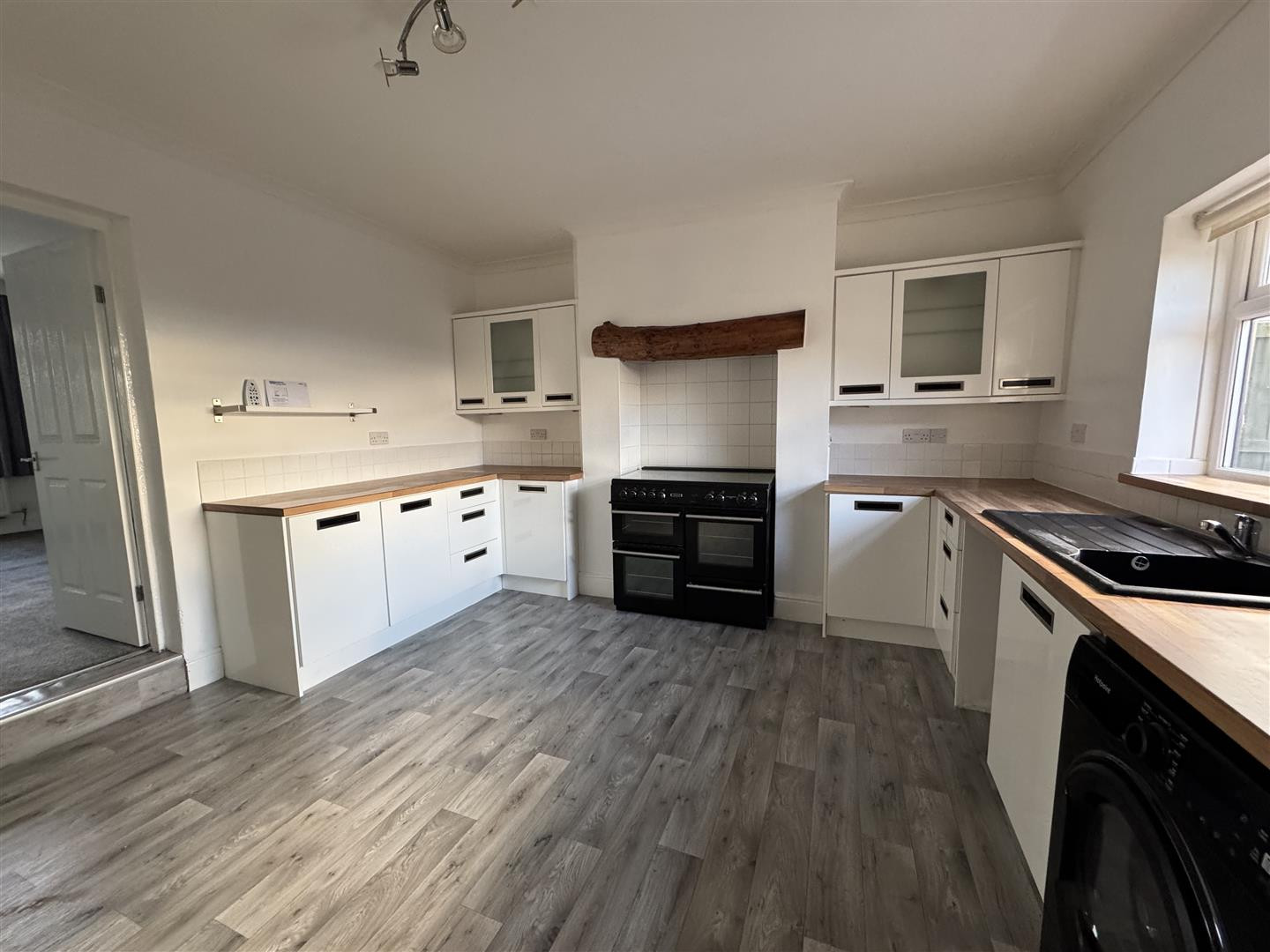 Laminated floor, central heating radiator, storage cupboard and rear entrance door.
