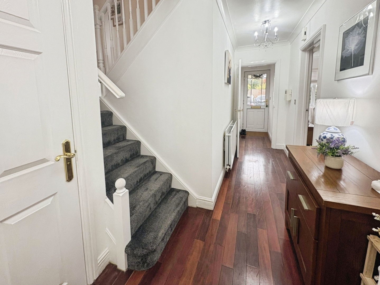 UPVC double glazed front entrance door, central heating radiator and wood flooring