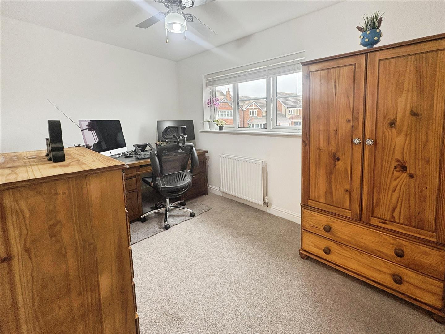 Immediately to the front of the property there is a small lawned garden, there is a side driveway providing car parking for three vehicles which leads to a single integral garage with power, lighting and wall mounted gas boiler.