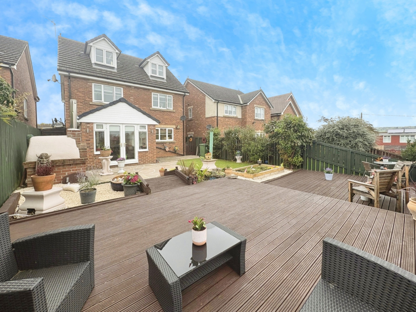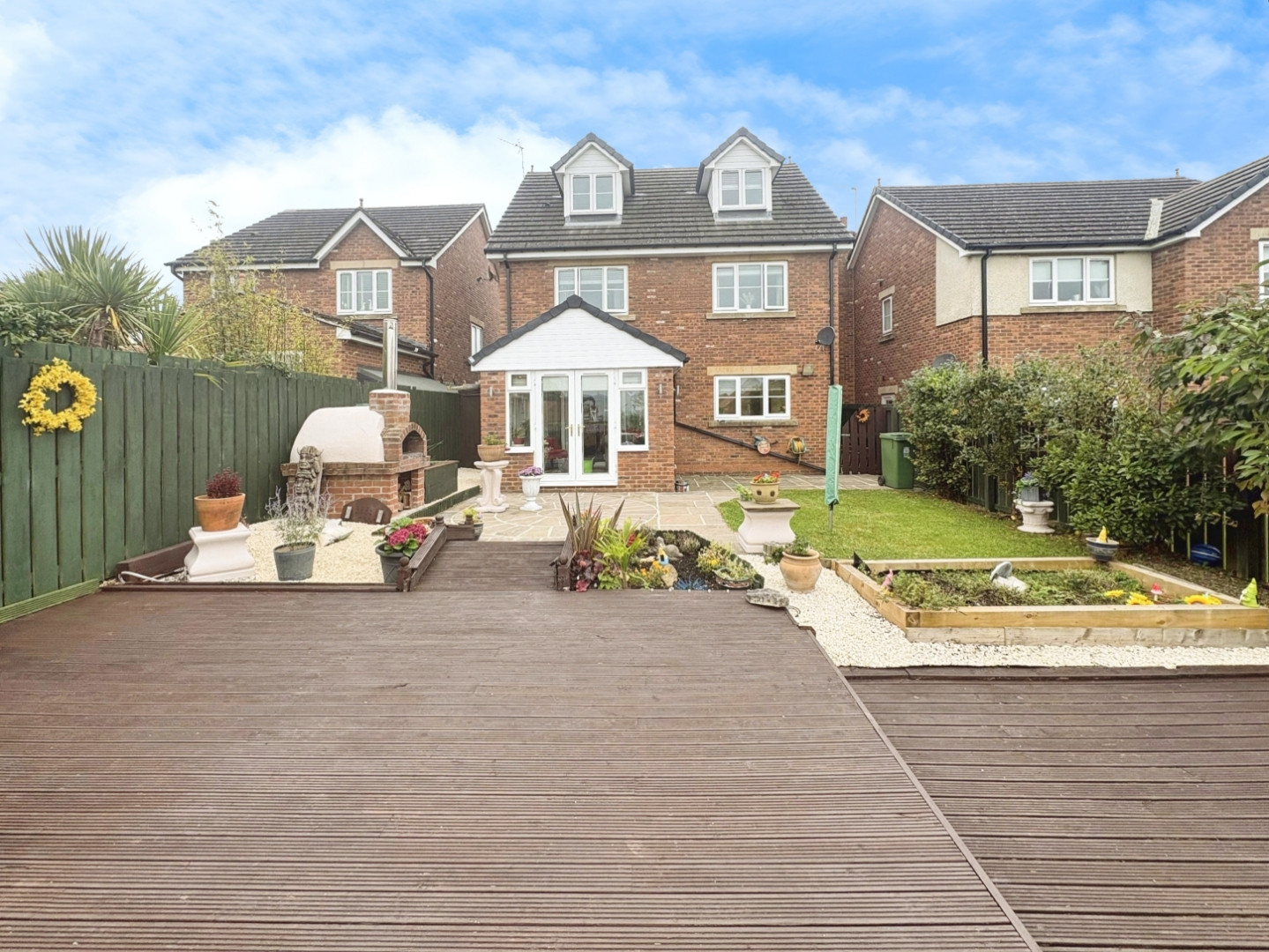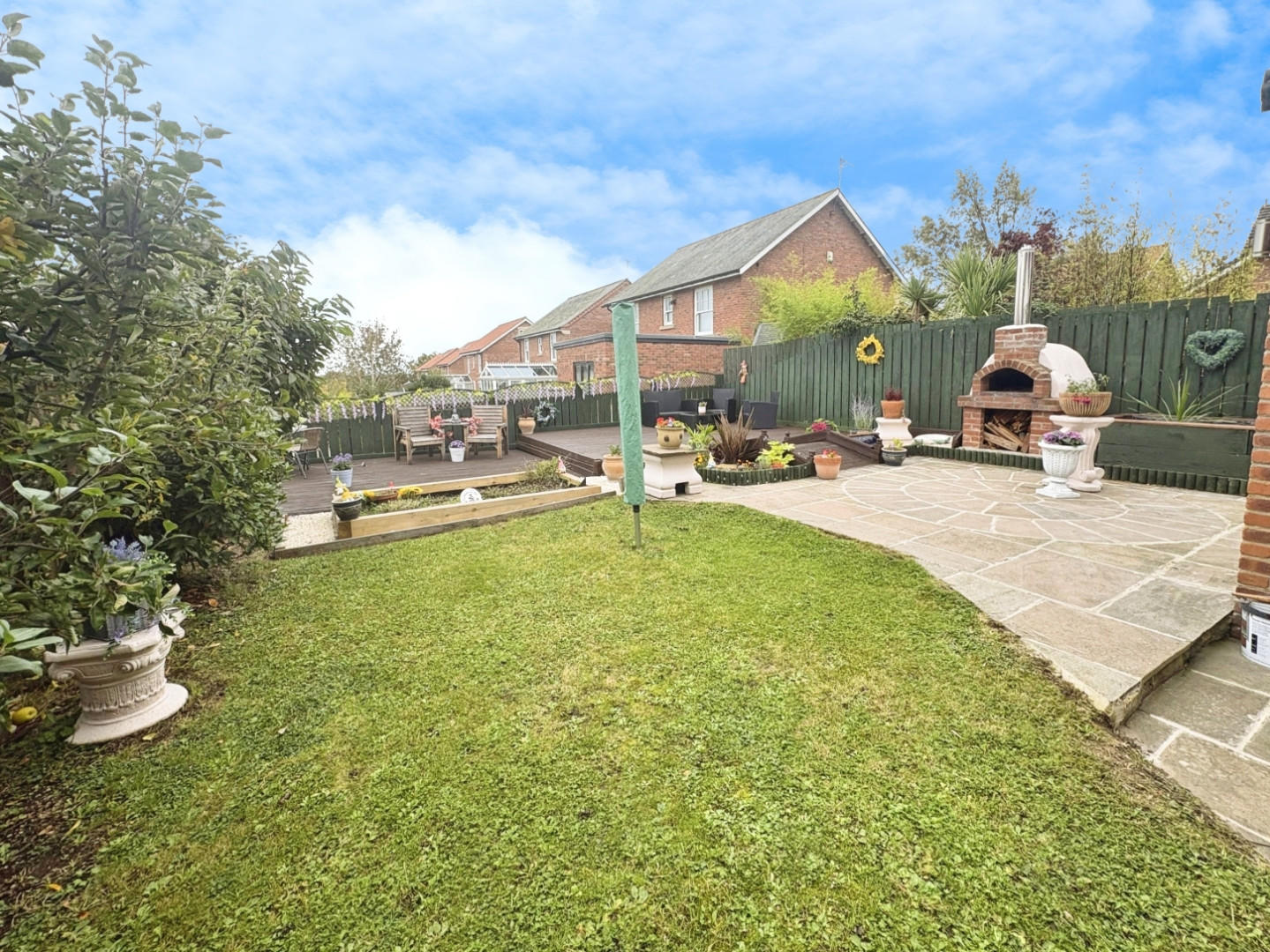Whilst to the rear of the property there is a lovely plan and maintenance garden with indian paved patio area and pathway, large decked patio area, brick built barbeque, external water supply. To the side of the property there is an attached storage shed