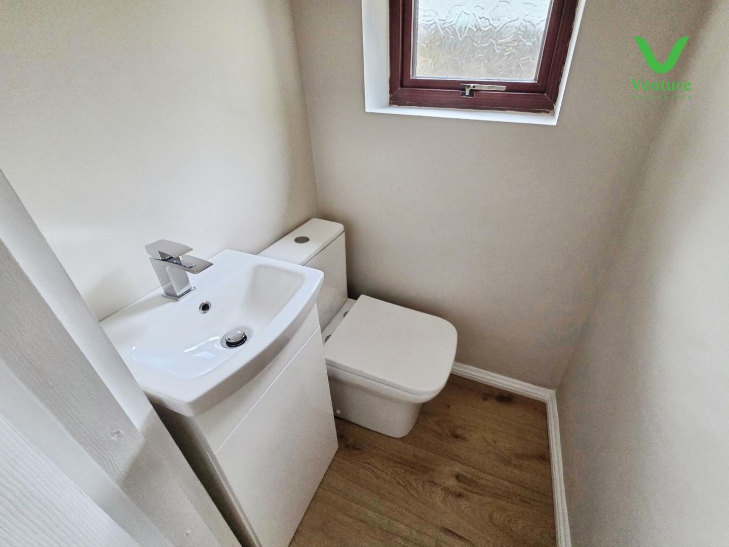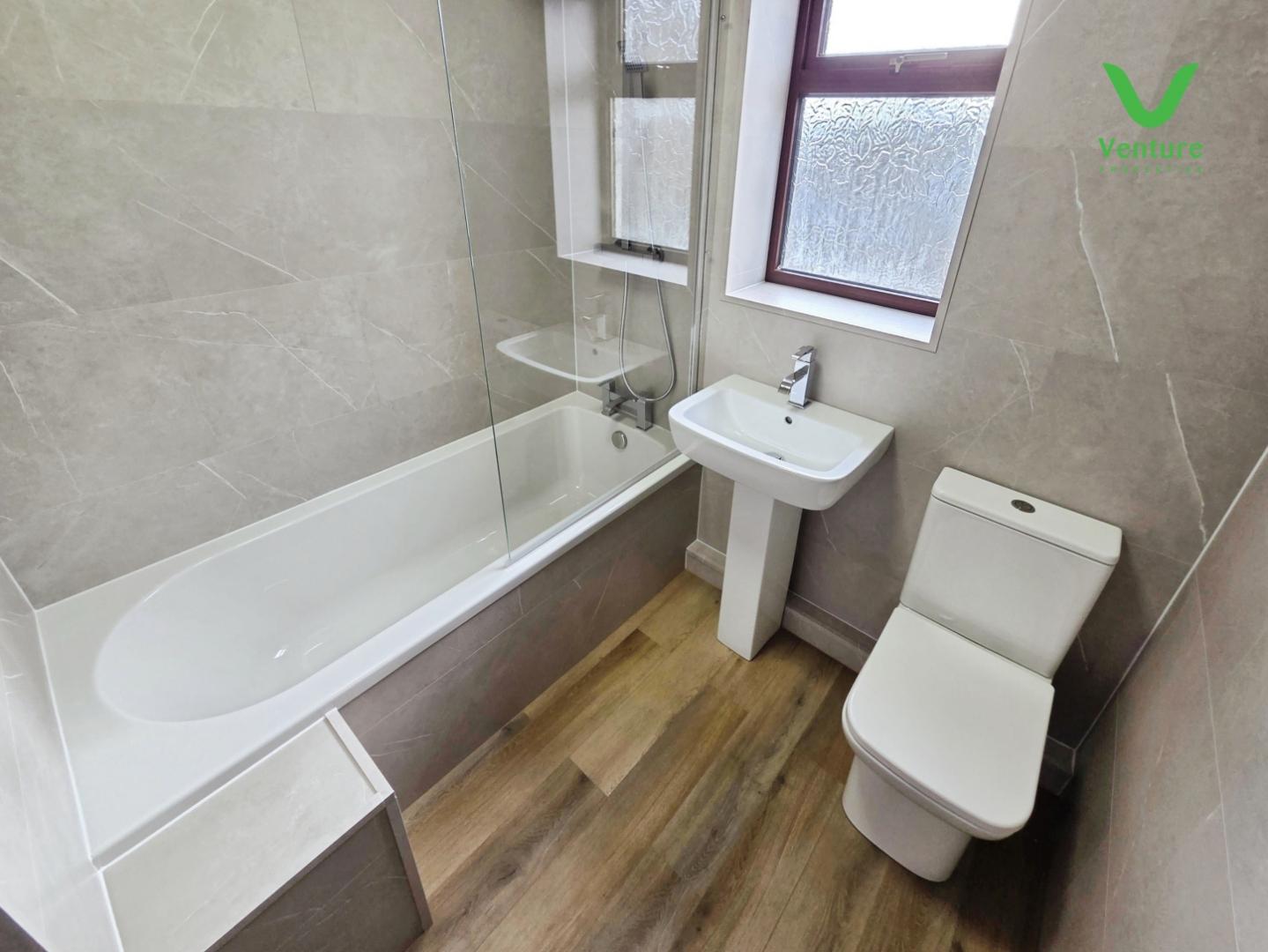 Fitted with a new white suite comprising of panelled bath with mains shower over, wc, wash hand basin and chrome heated towel rail.