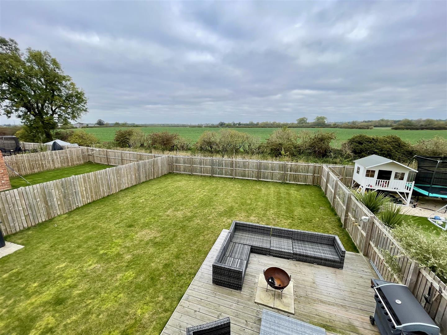 To the rear is a spacious garden which is mainly laid to lawn with raised decking area.