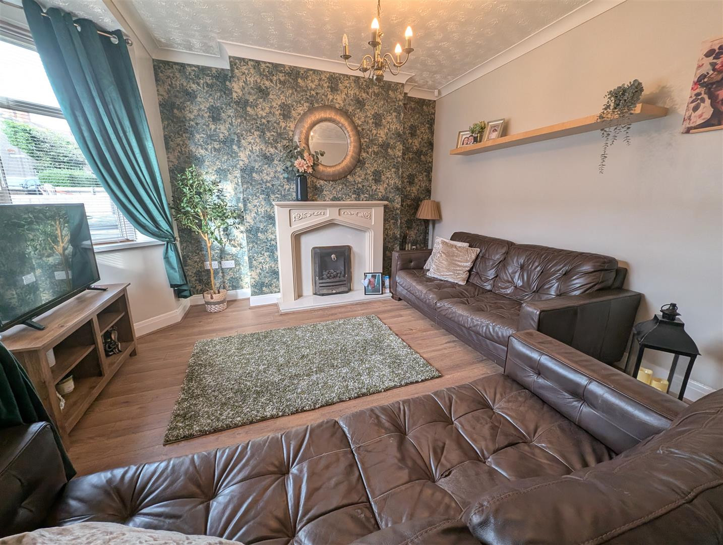 With a Upvc double glazed bay window to the front, feature fireplace with gas fire, laminate flooring and radiator.