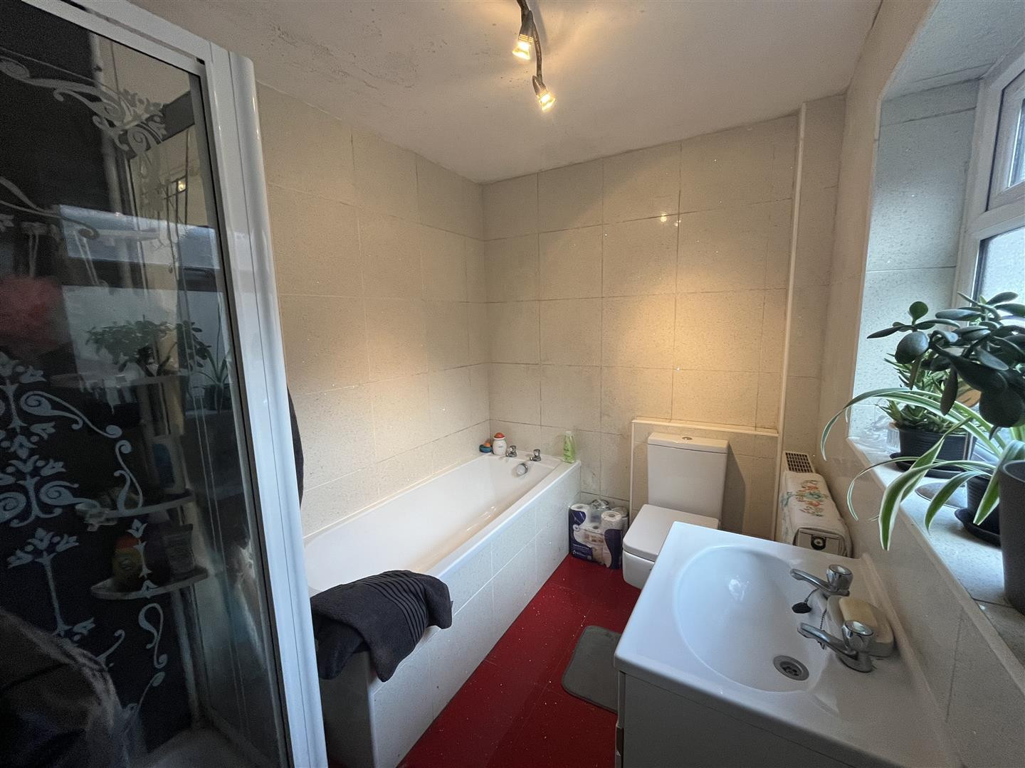 Having a panelled bath, separate shower cubicle, wash hand basin, wc and central heating radiator.