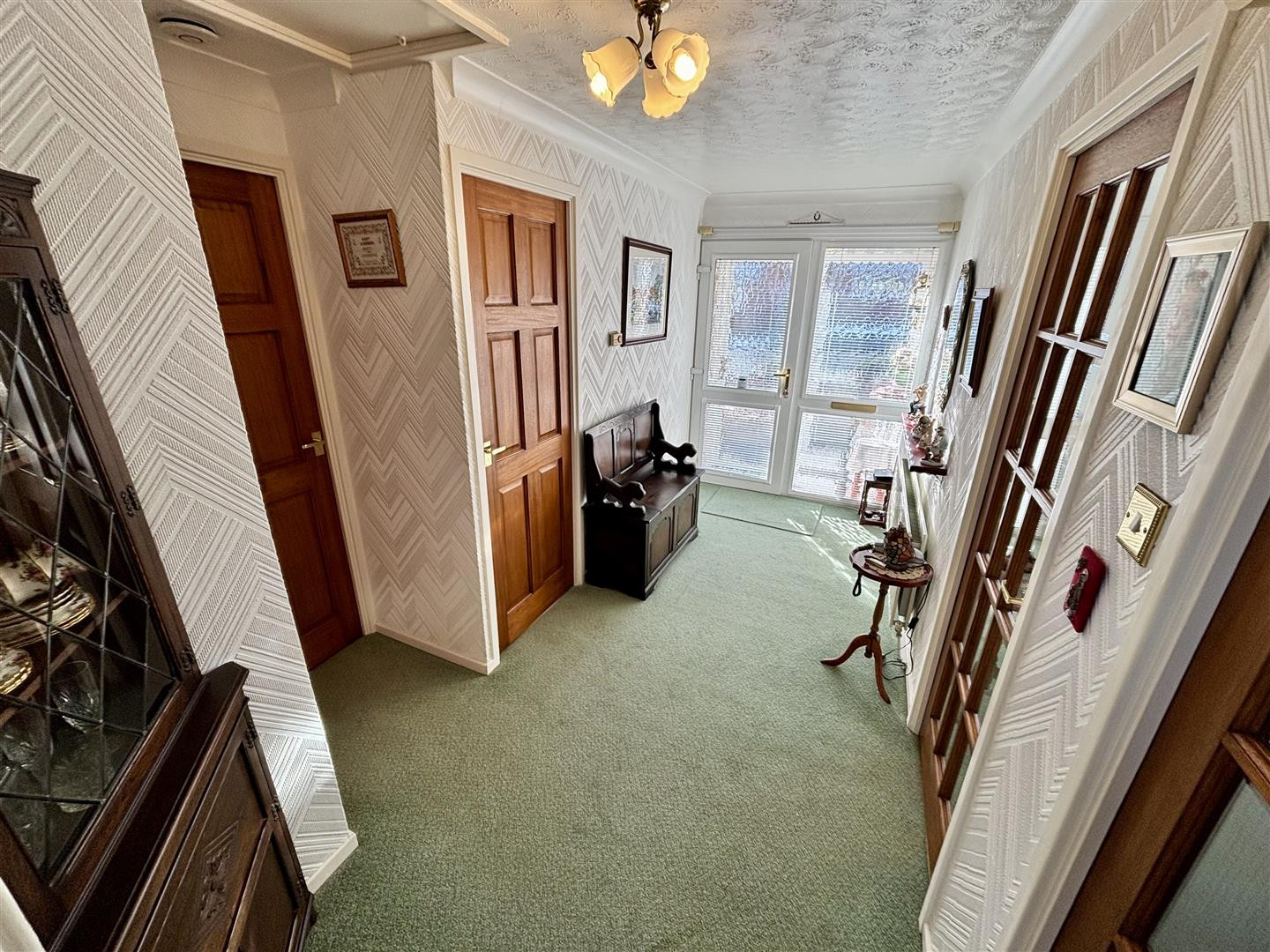 Entered via patio doors. With glazed internal door to the hallway.