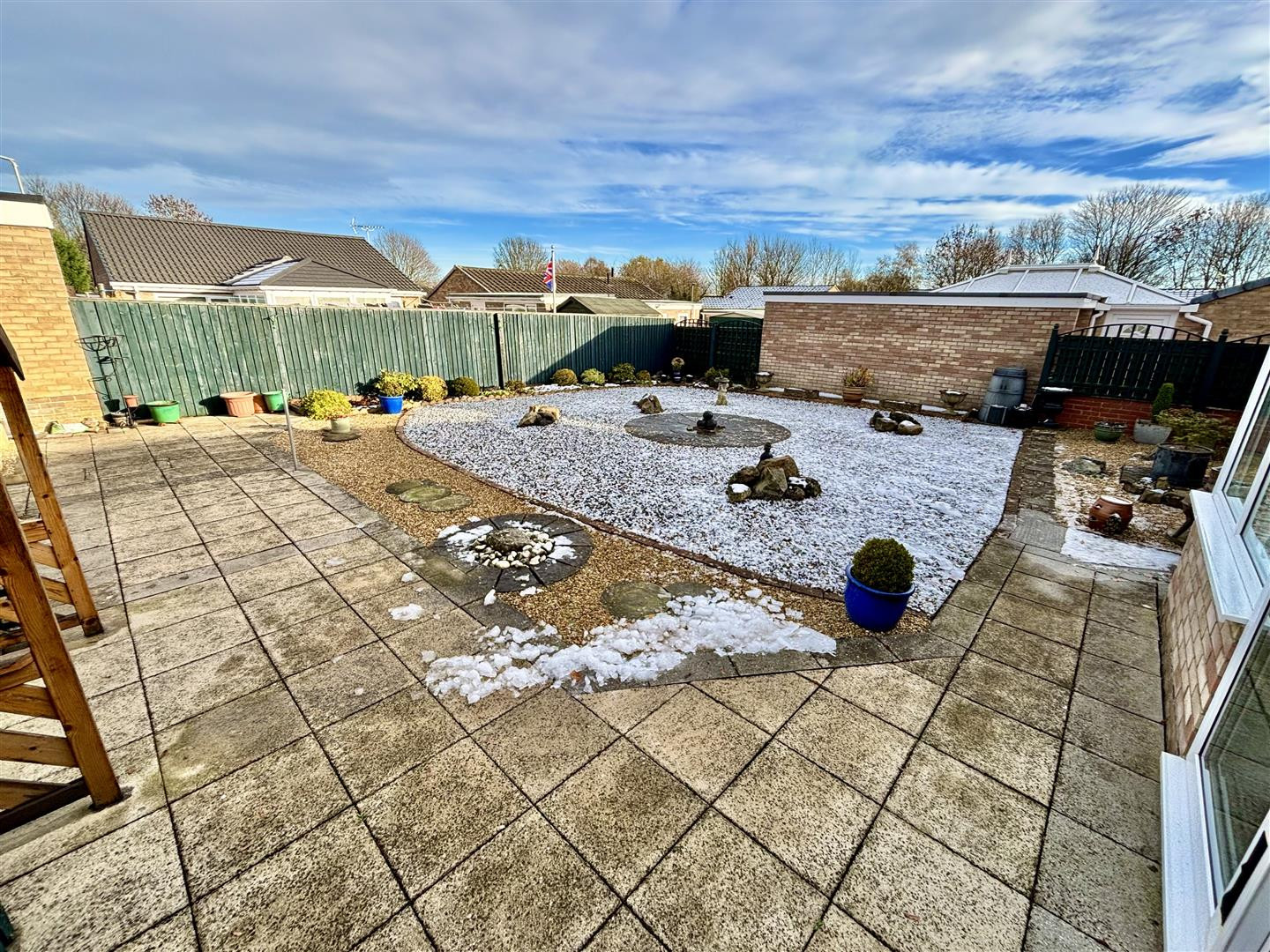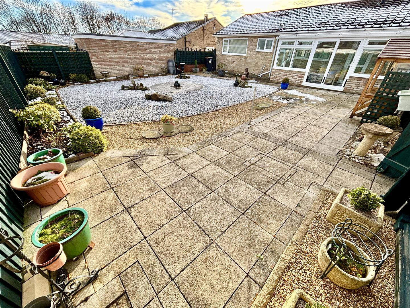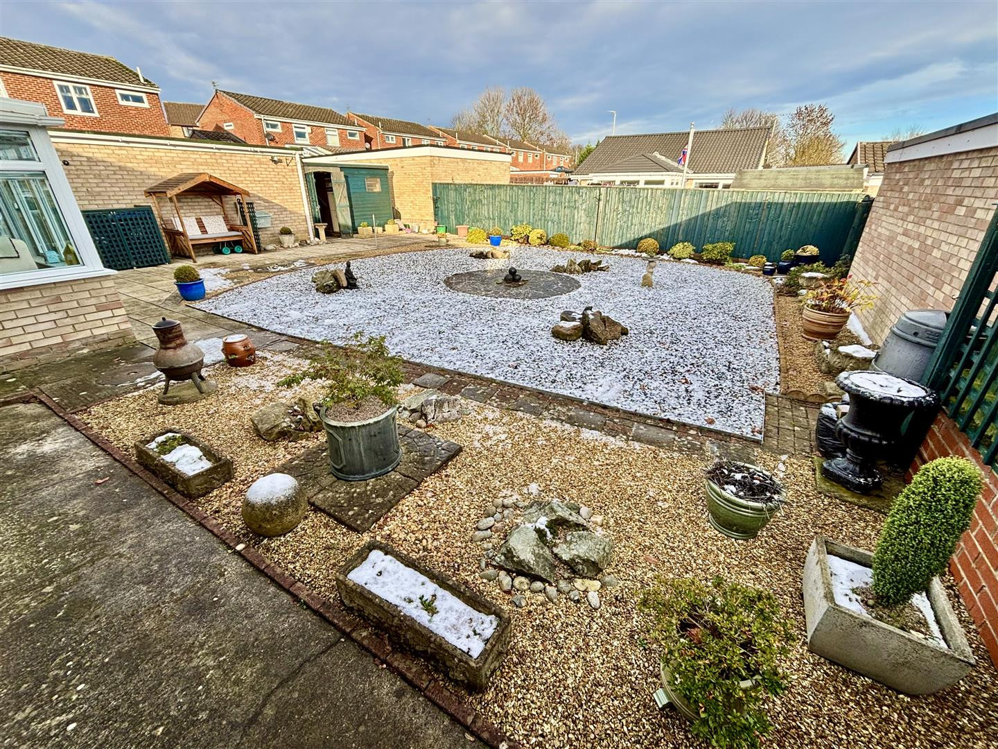 The property enjoys well maintained gardens to the front and rear which have been designed for easy maintenance with a useful wooden shed. There are double gates to the side which provide access to a triple length driveway for off street parking.