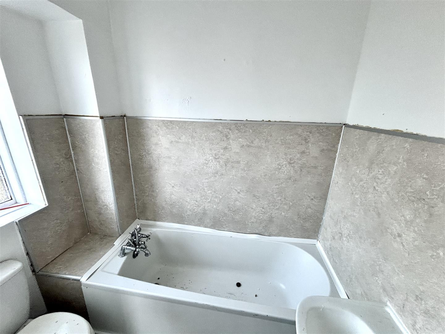 Comprising of a panelled bath, pedestal wash basin and WC. Having a tiled splashbacks, radiator and UPVC double glazed opaque window to the side.