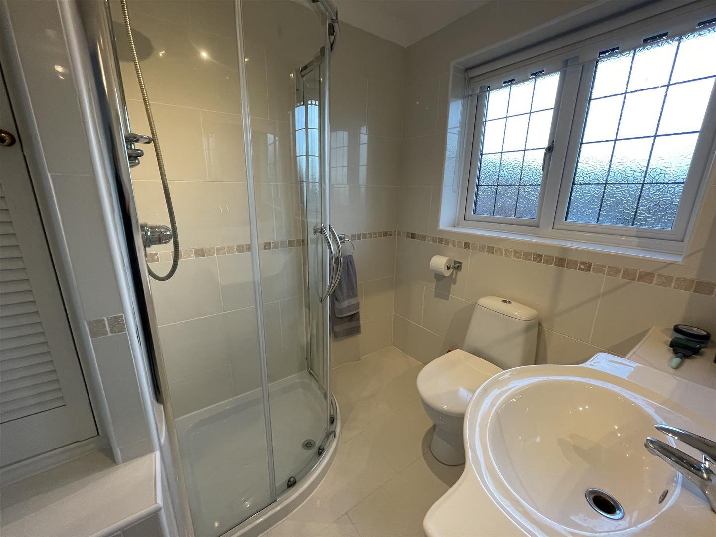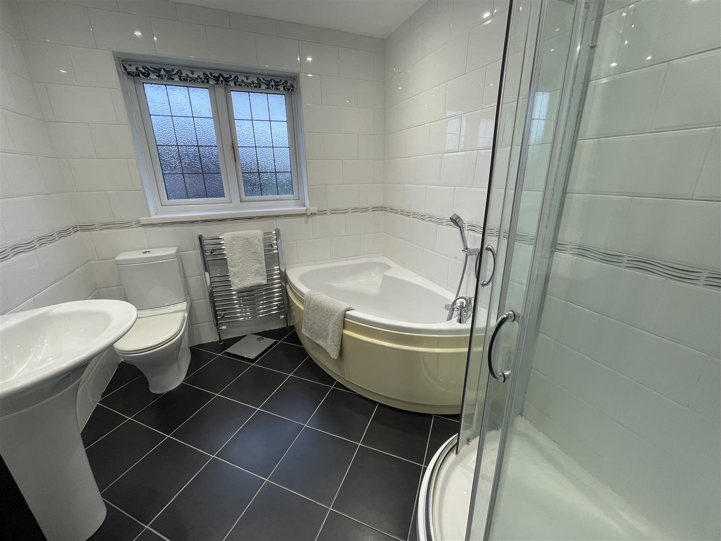 The first floor boasts three generously sized double bedrooms, alongside a single bedroom, with three of the rooms benefiting from fitted wardrobes. The main bedroom features a stylishly refitted en suite, while a well-appointed family bathroom with a WC and shower completes this level.