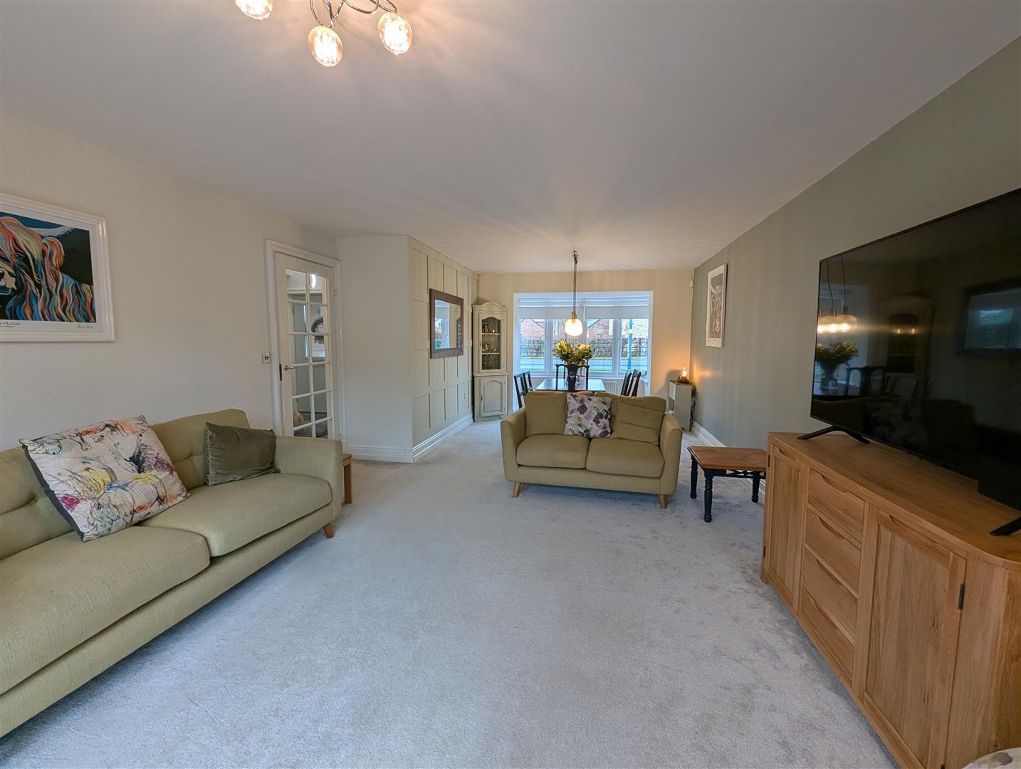 Upvc double glazed bay window to front and double doors to rear. Open aspect, bright and airy room with ample space for a dining table and chairs. Part panelled walls and two radiators.