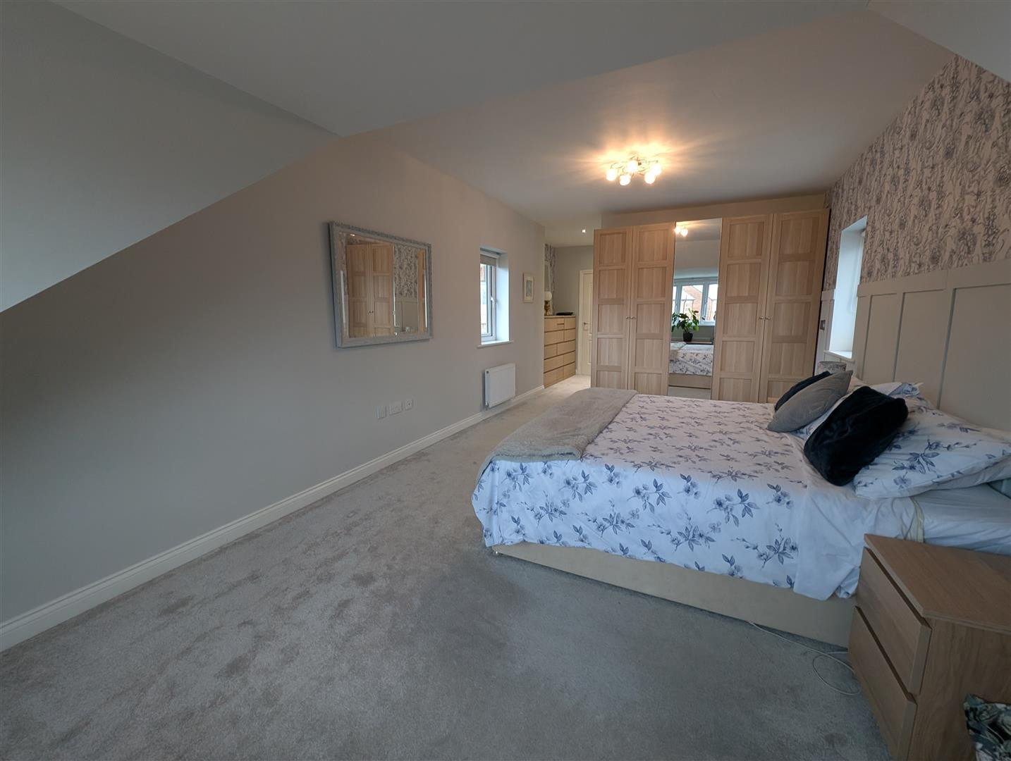 Three Upvc double glazed windows to front and side. Free standing wardrobes, radiator and access to dressing room and en-suite. Part panelled walls.