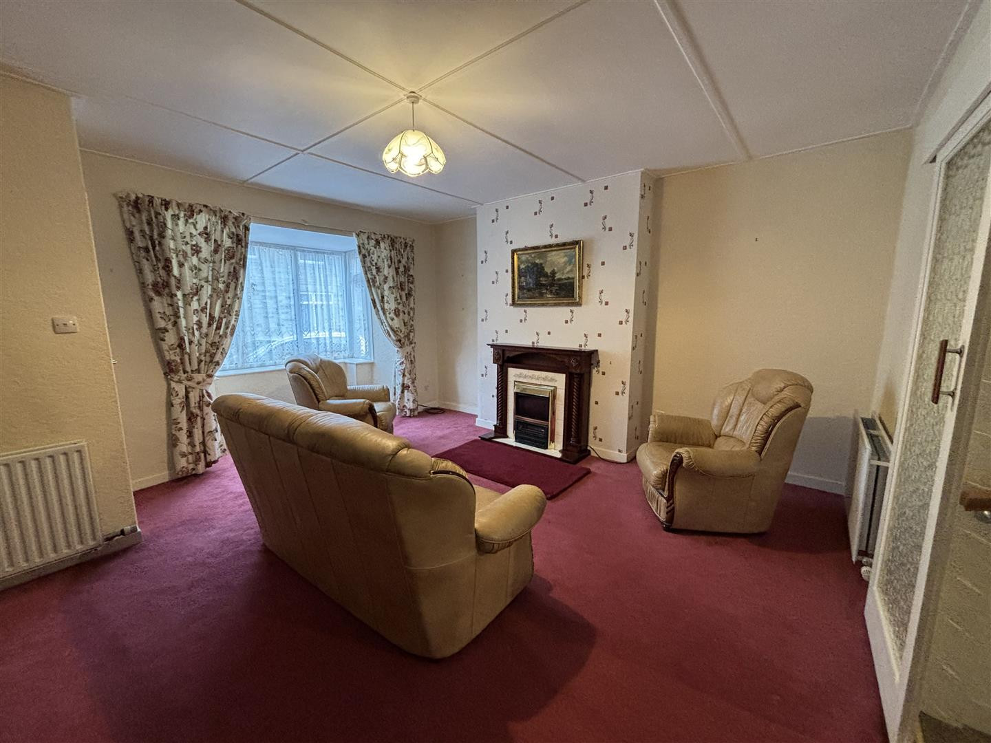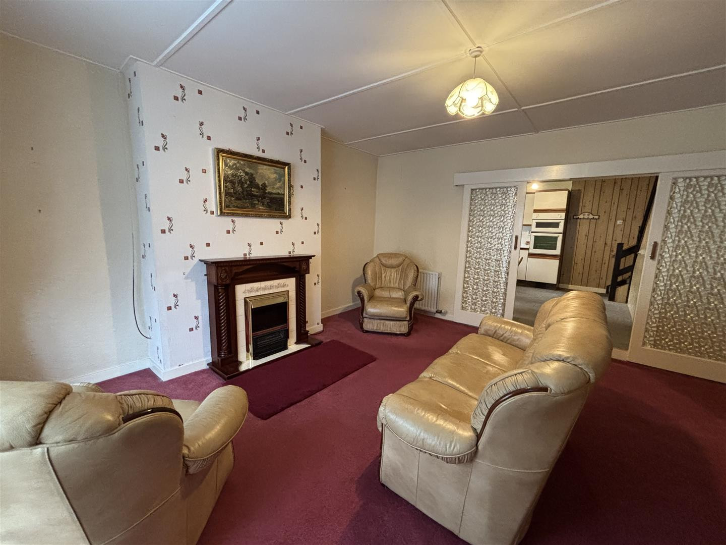 UPVC double glazed window to the front elevation, feature timber fire surround, tiled inset and hearth, two double central heating radiators, open through to:
