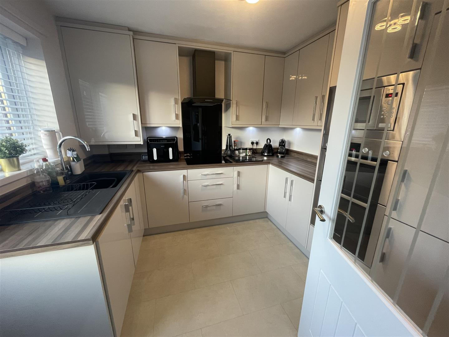 As you enter, you are greeted by a welcoming entrance porch that leads into a spacious lounge, which flows seamlessly into the dining room, creating a perfect space for entertaining or relaxing with family. The superbly refitted kitchen is a standout feature, equipped with built-in appliances that cater to all your culinary needs.