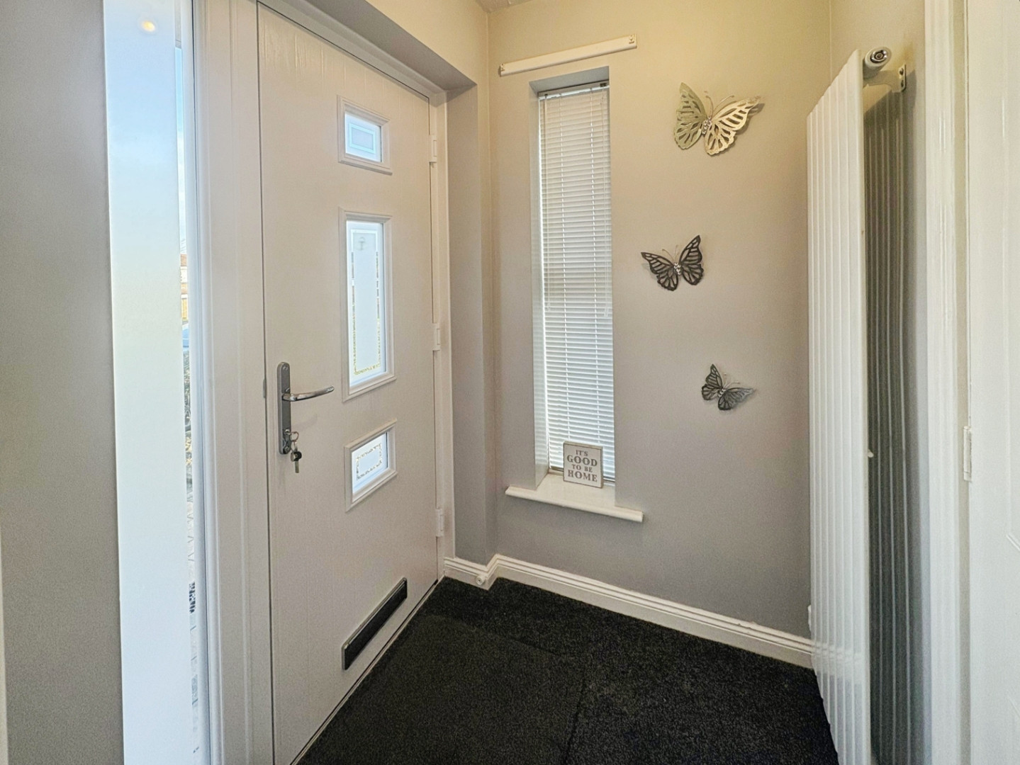 Accessed via composite entrance door, floor to ceiling radiator and UPVC window.