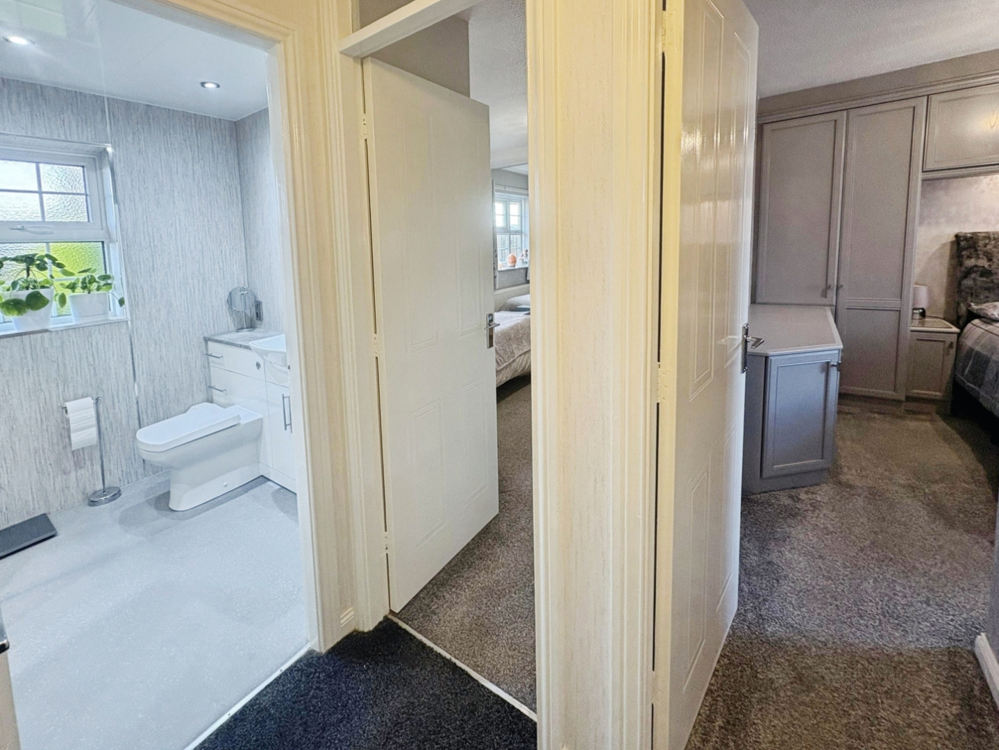Located off the living room providing access to the remainder of the bungalow. Access to a useful linen storage cupboard housing the gas central heating boiler. Access to the loft via pull down ladder with lighting and partial boarding for addition storage.