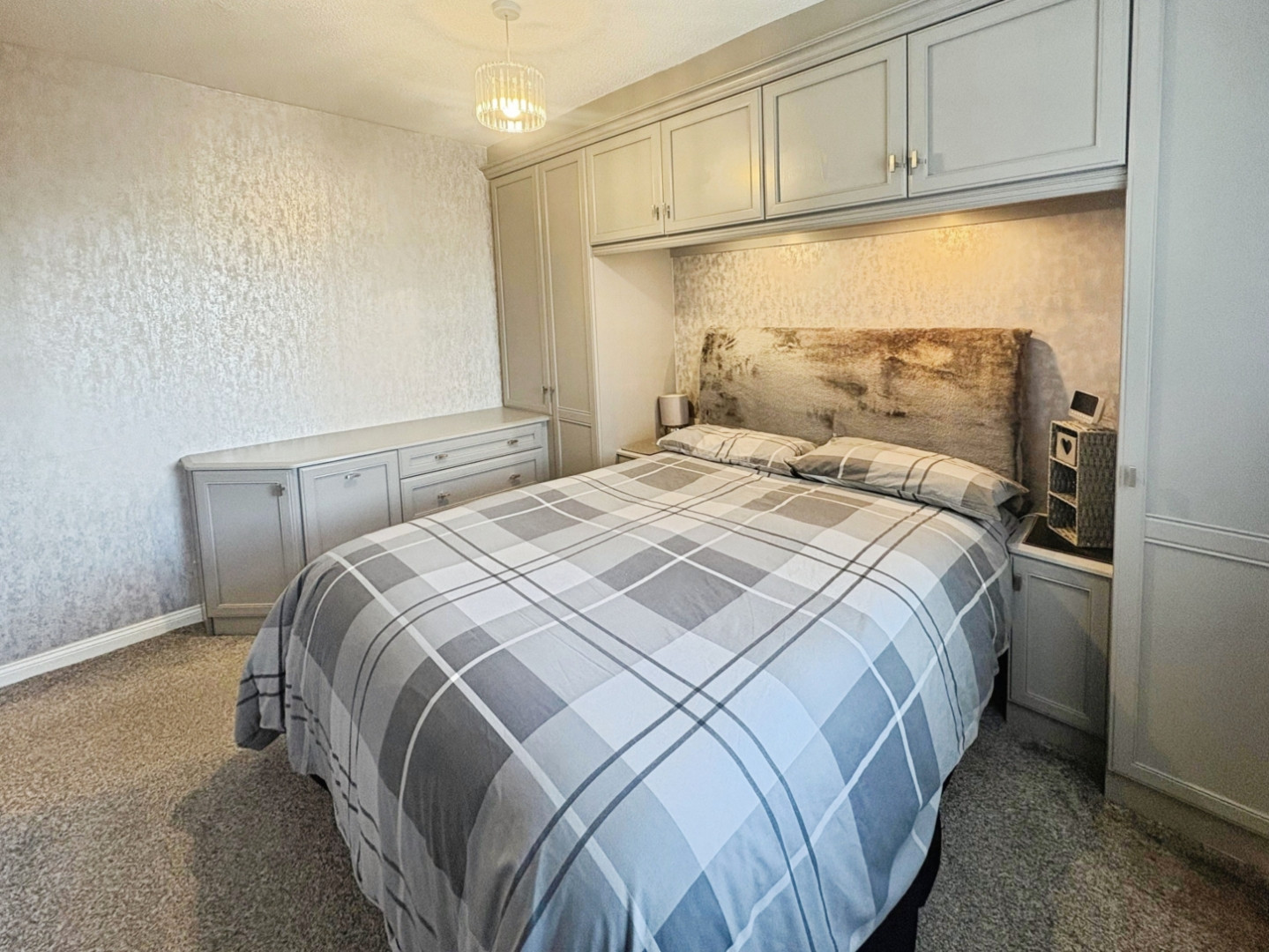 Located to the front elevation of the property having UPVC window, central heating radiator and fitted wardrobes and drawers to two sides.