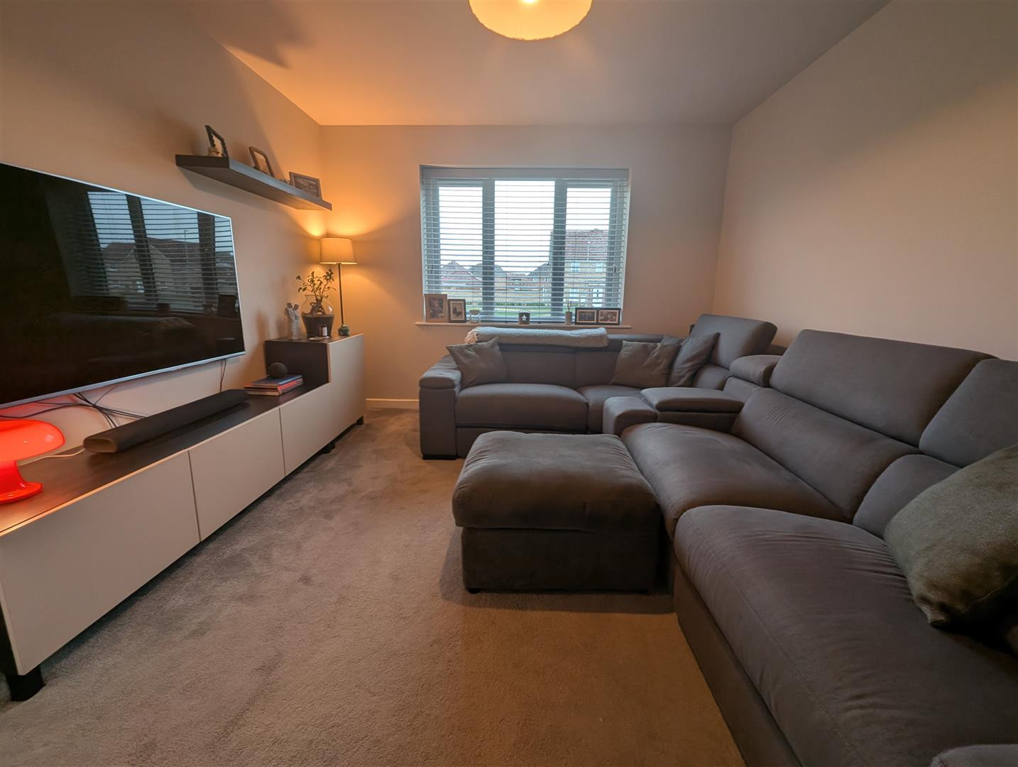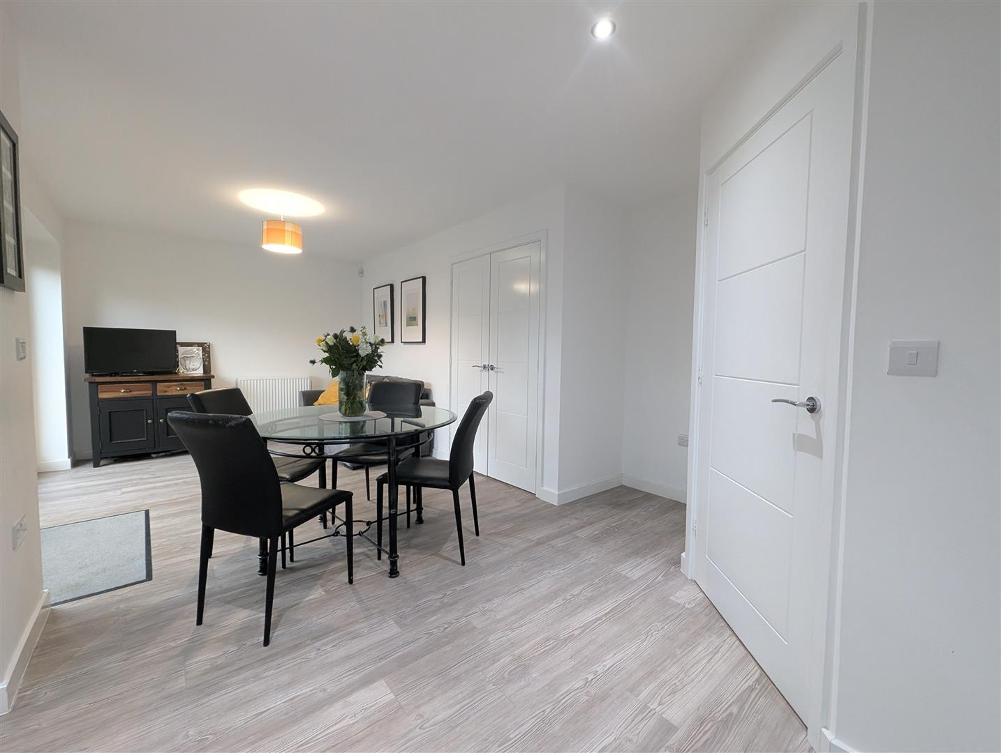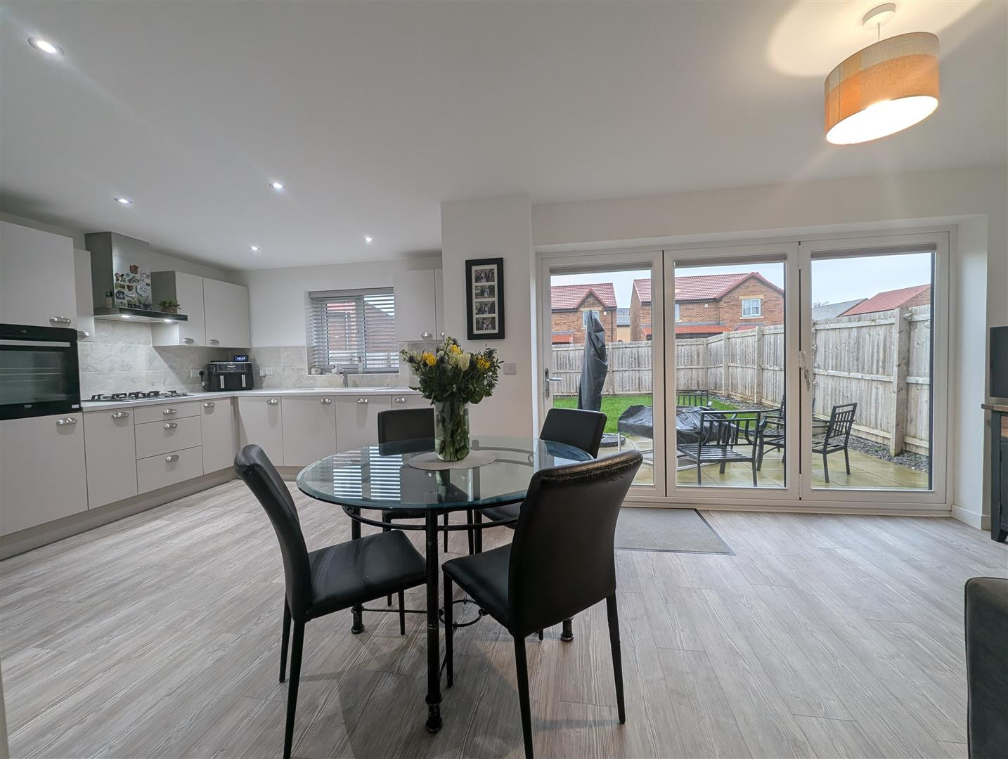 Upvc double glazed window and bi-fold doors to rear, fitted with light grey wall, base and drawer units, composite sink with mixer tap, gas hob with extractor over and eye level oven. Integrated fridge freezer and dishwasher. Lvt flooring, spotlights to ceiling and radiator. Open aspect dining and family areas. Plenty of room for a dining table and chairs with additional seating area.