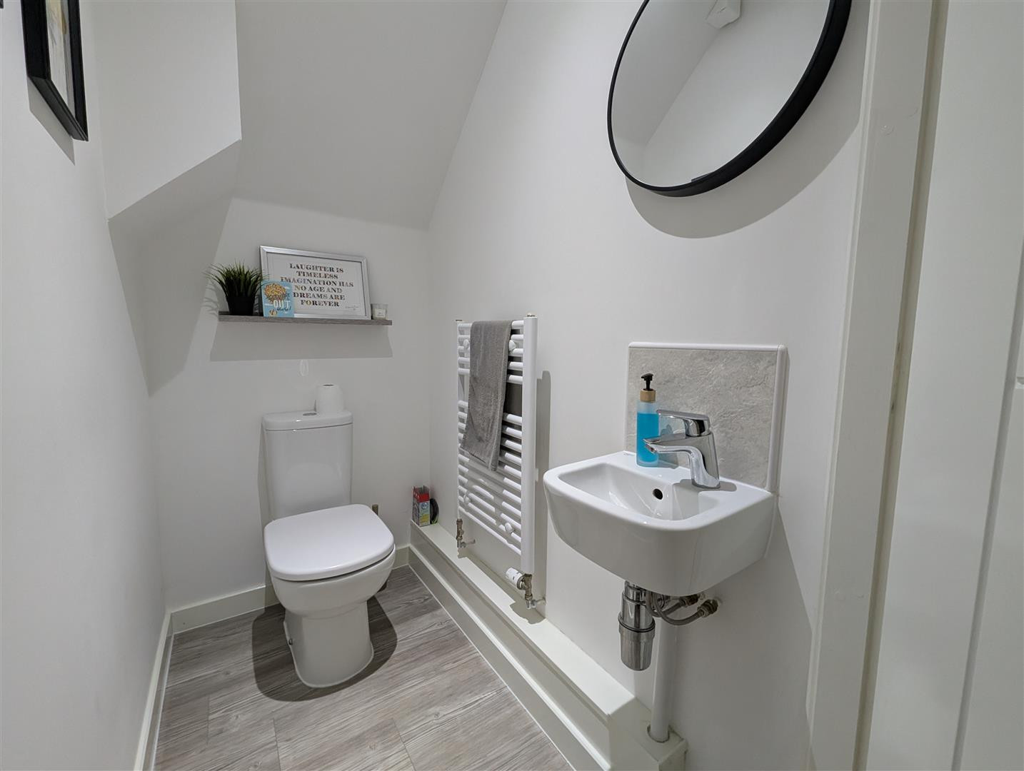 Low level w.c, wash hand basin, lvt flooring and heated towel rail.
