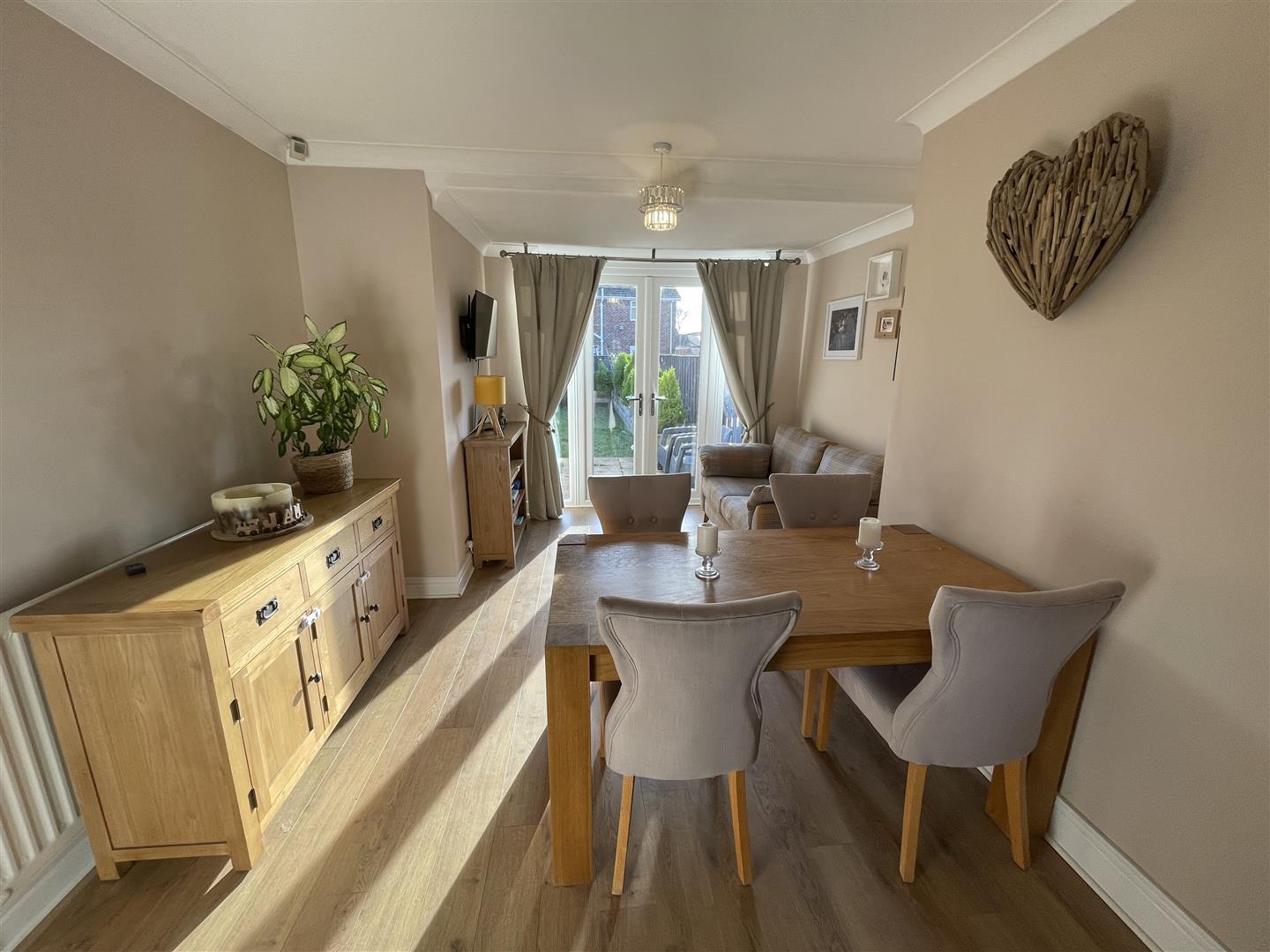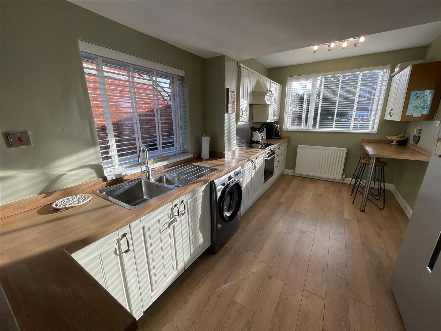 Upon entering, you are greeted by a welcoming entrance hall that leads to a spacious and extended lounge/dining/family room, perfect for entertaining or relaxing with loved ones. The refitted cream kitchen is a delightful feature, equipped with a built-in hob, oven, and extractor, ensuring that cooking is a pleasure.