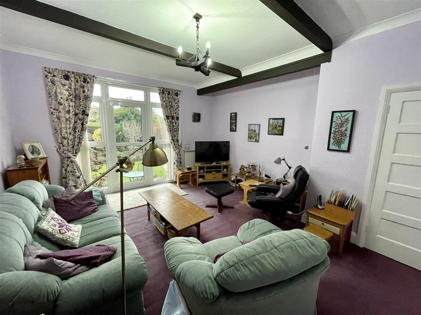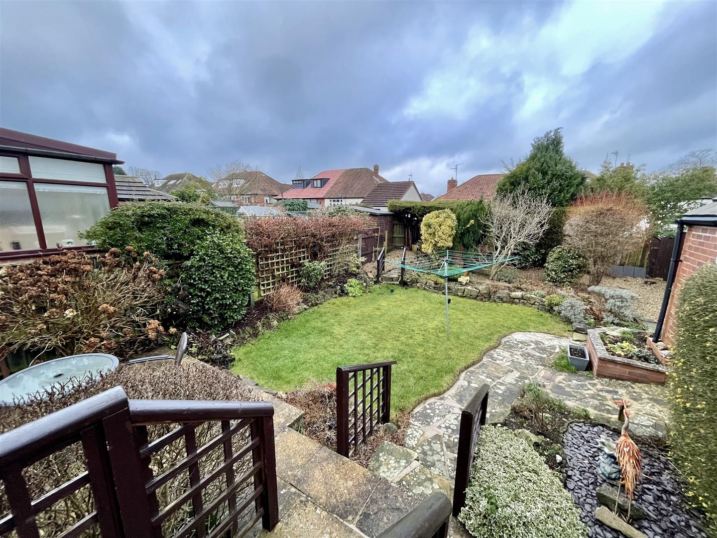 To the front there is a generous driveway and access to detached garage and rear garden. There is also a garden area with well established plants and shrubs.
