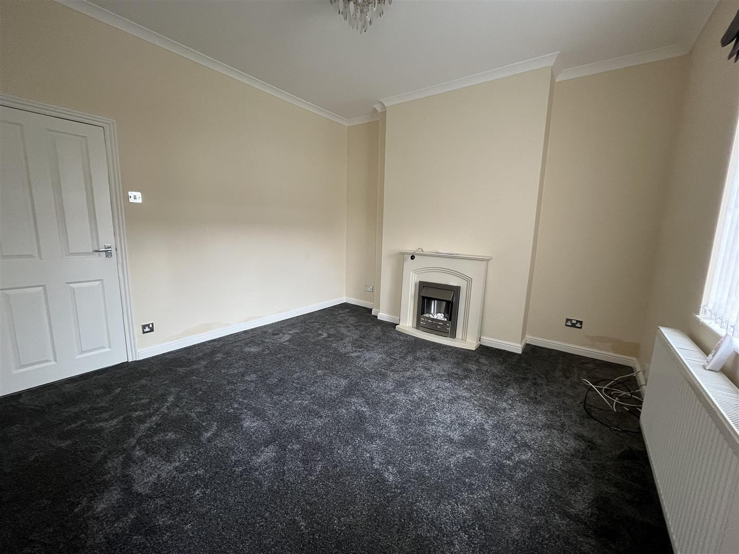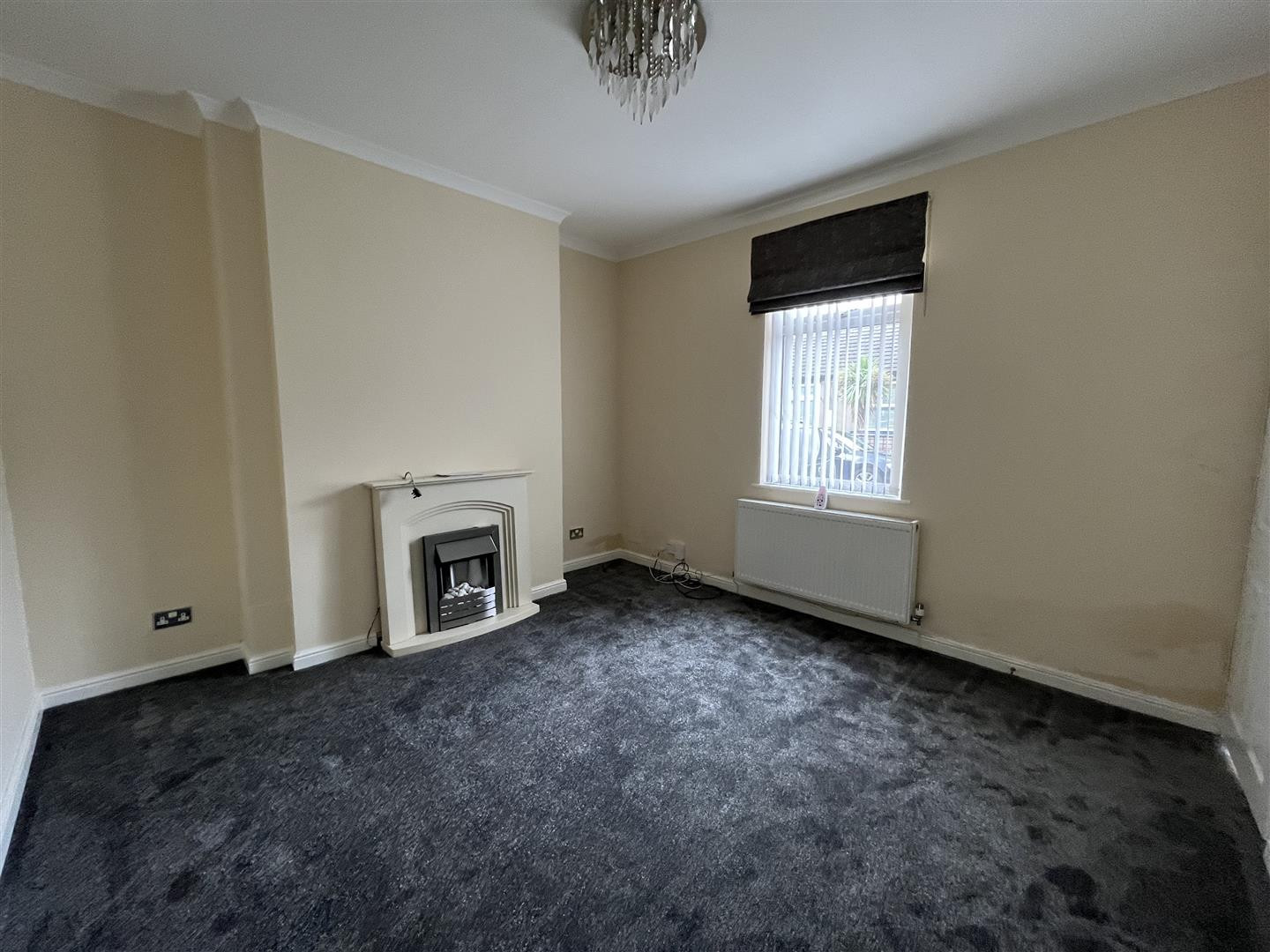 Having feature fireplace with electric fire, central heating radiator and uPVC double glazed window to front.