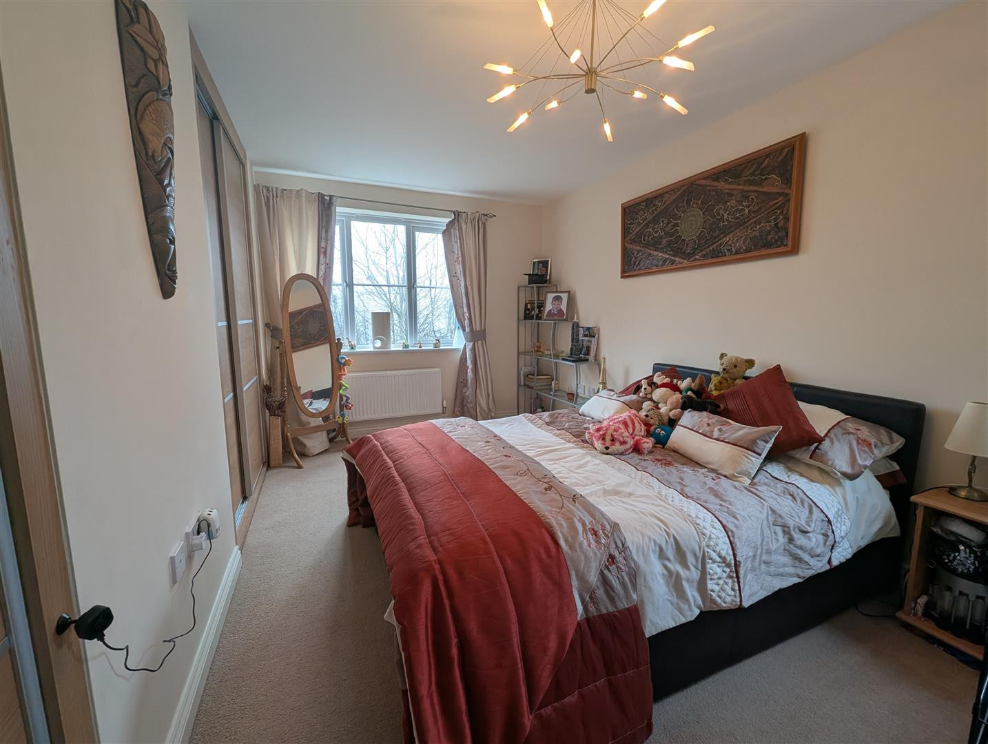 Upvc double glazed windows to rear and side with double fitted sliding door wardrobes, radiator.