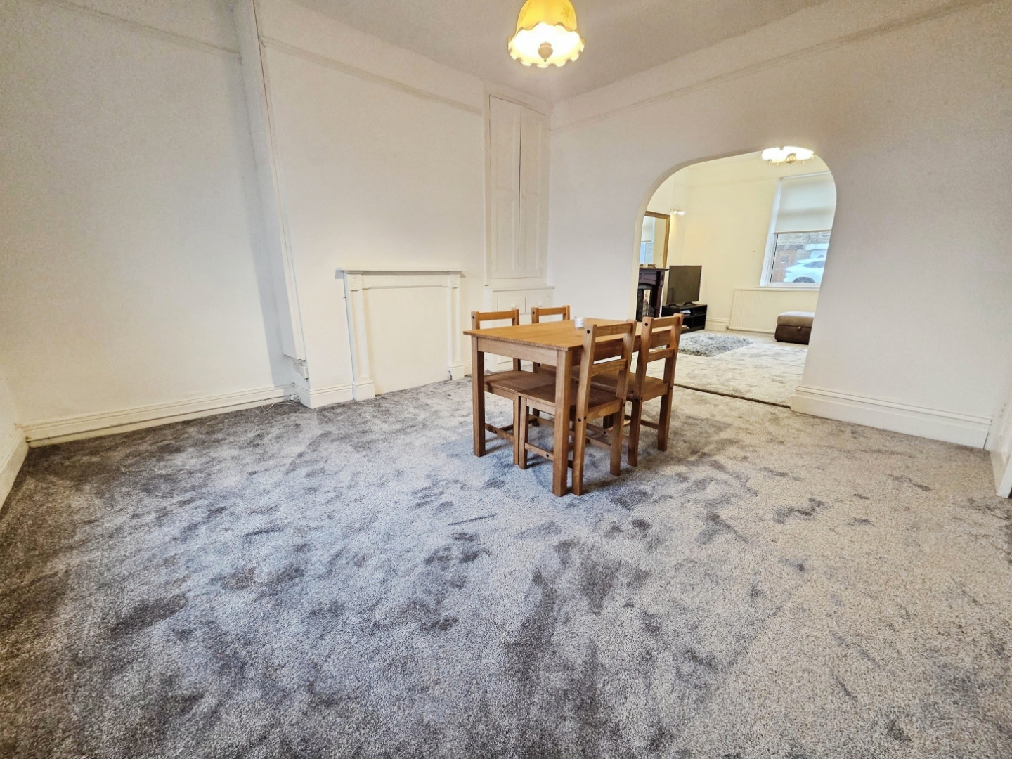 With a feature fireplace with tiled inserts and open fire, central heating radiator and uPVC double glazed window to front.