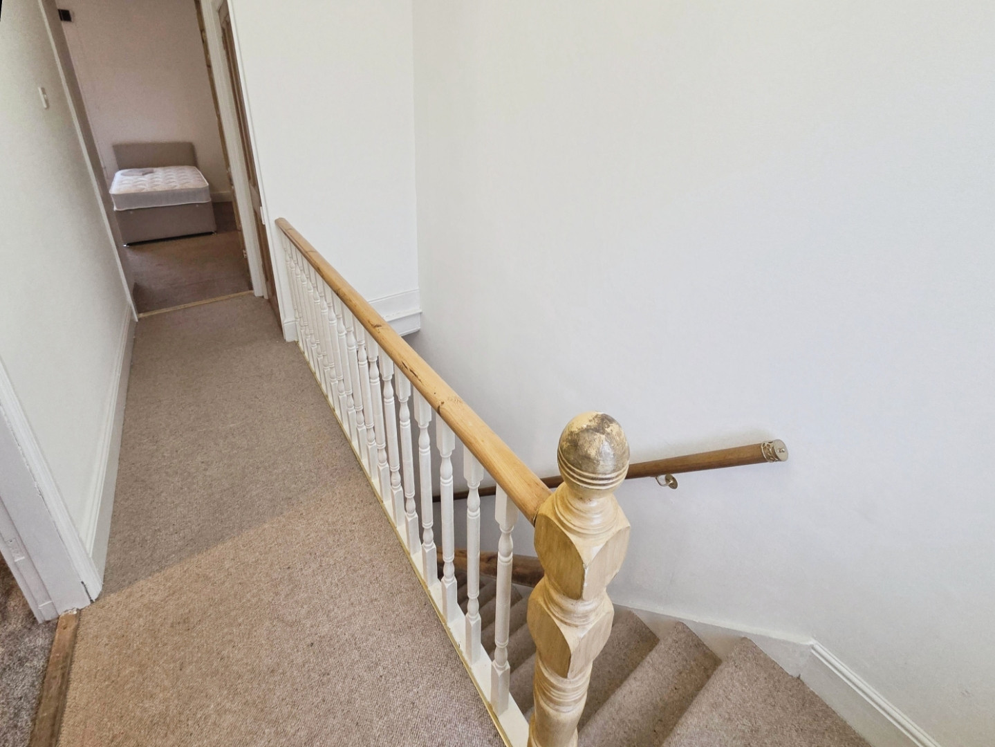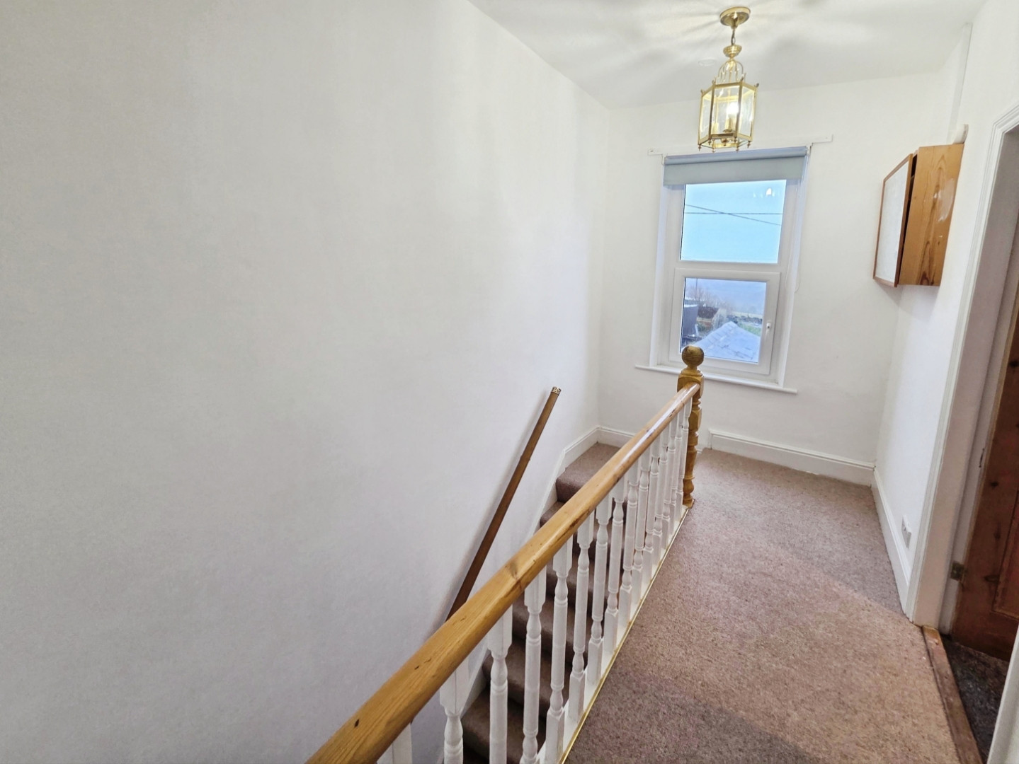 A traditional landing with storage cupboard and uPVC double glazed window to rear.