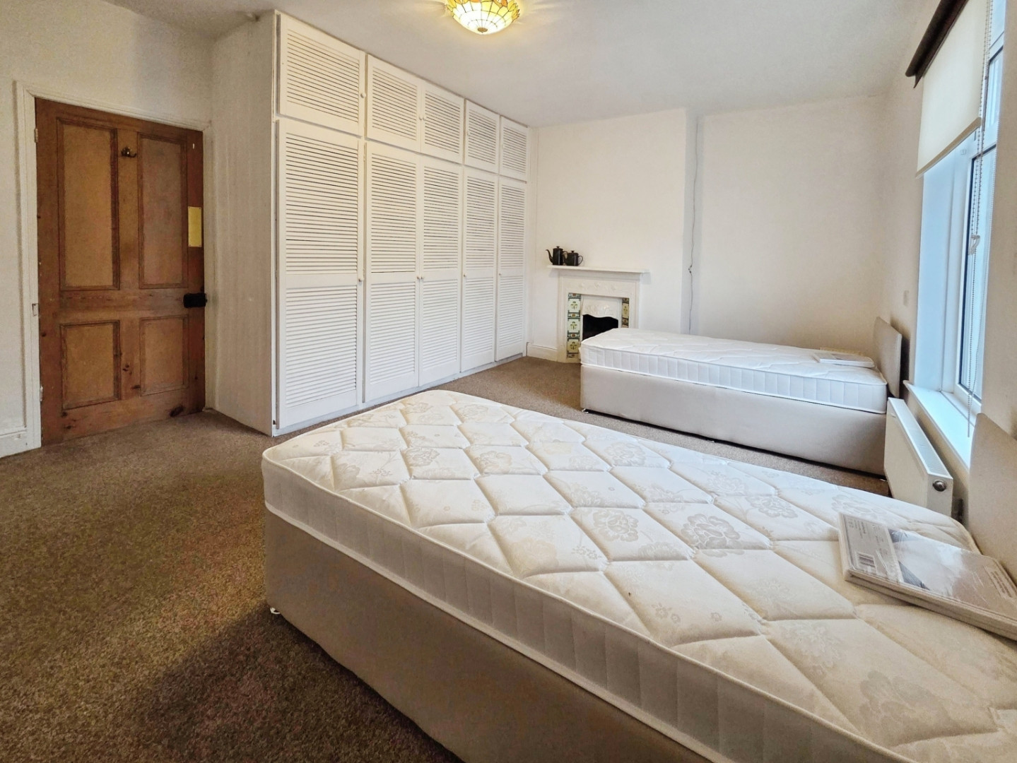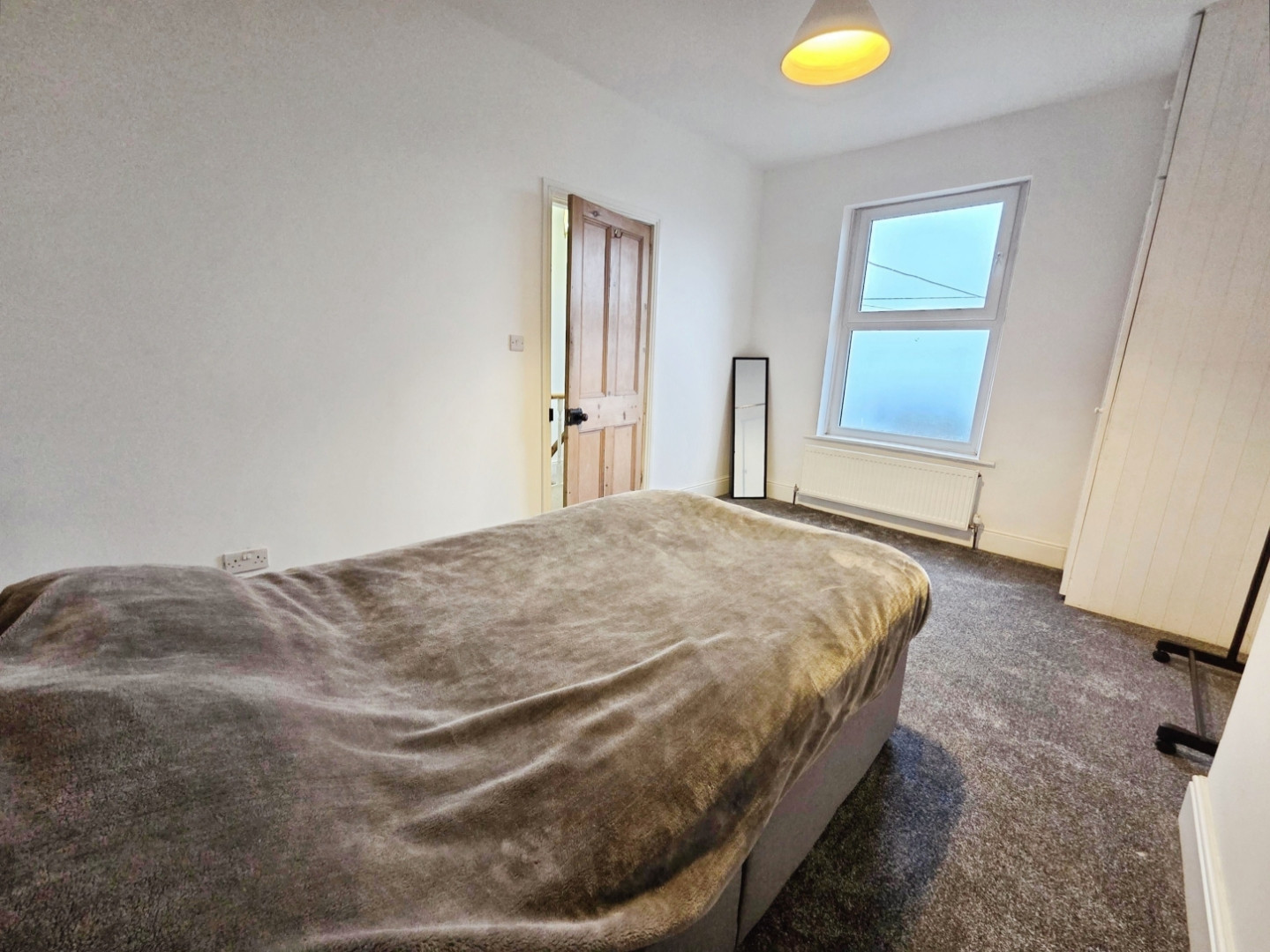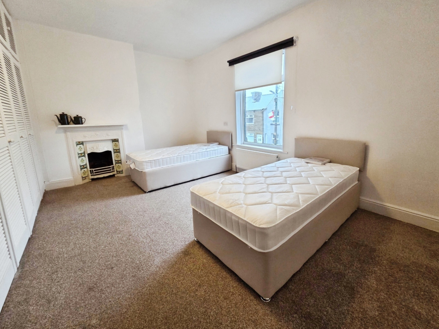 With fitted wardrobes to one wall, central heating radiator , feature cast iron fireplace and uPVC double glazed window to front.